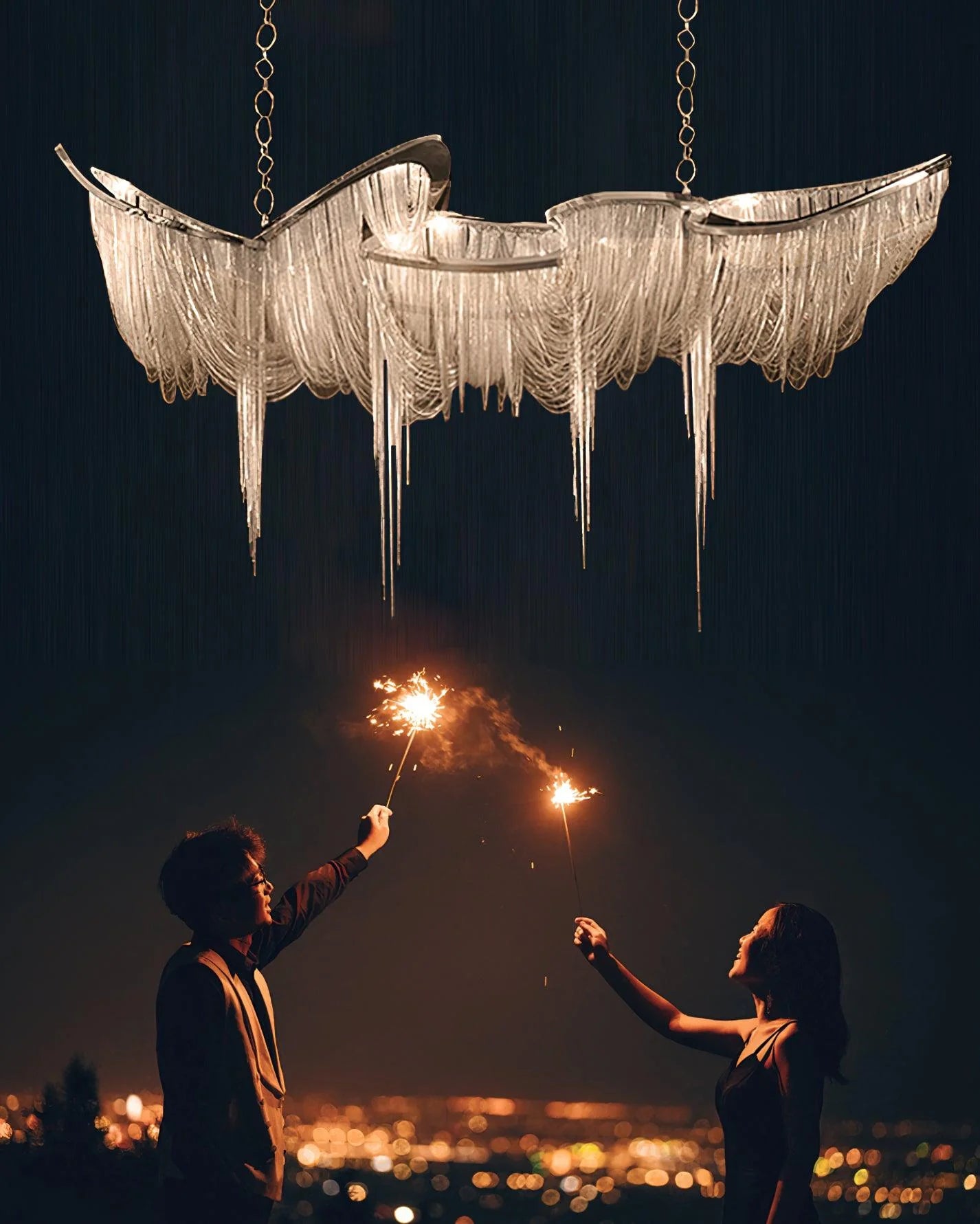 Elevate your space with timeless sophistication. This luxury chandelier features gleaming golden aluminum chains that catch light beautifully, creating an understated yet striking focal point. The minimalist design complements any interior style—from contemporary to classic—while the premium finish ensures lasting elegance. Suitable for entryways, dining rooms, or bedrooms seeking refined ambiance without excessive ornamentation. Transform ordinary moments into extraordinary experiences with this statement piece that whispers luxury through every detail.