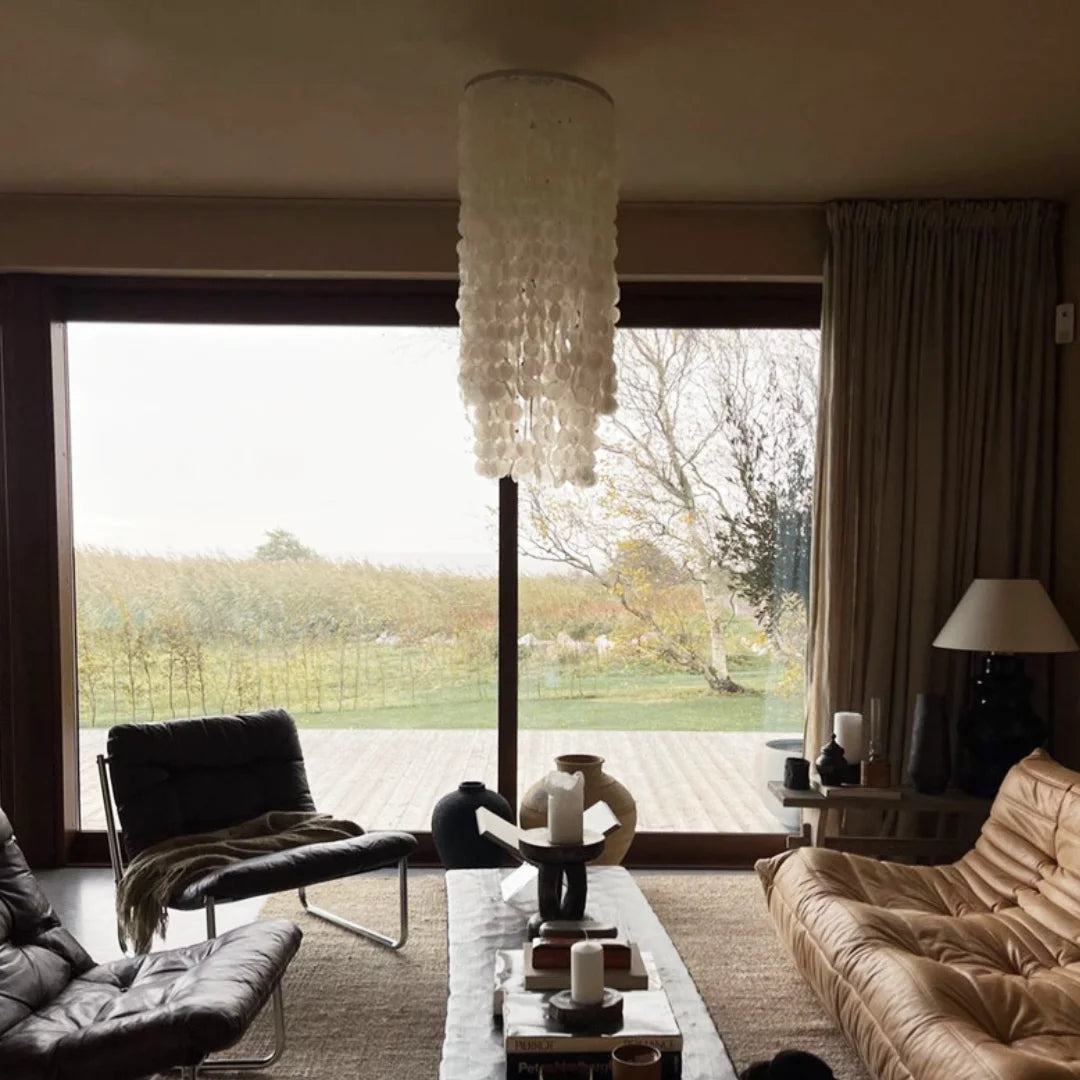 This pearl white shell chandelier features a layered design that adds subtle texture and visual interest to any ceiling. The individual shell elements create soft variations in light and shadow throughout the day. Its minimalist style fits well in a range of interiors—from modern to coastal. Suitable for entryways, dining rooms, or bedrooms, this chandelier provides functional illumination while offering a simple, elegant design.