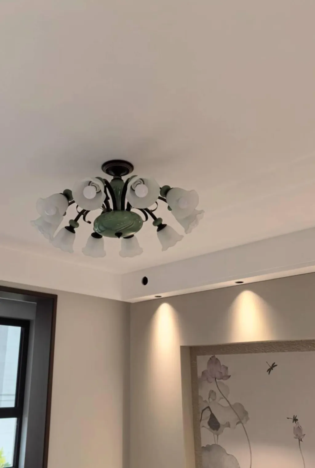 The Zhuo'lu Ceramic Flower Ceiling Lamp features a high-quality ceramic central column with natural textures and smooth, rounded lines for an elegant finish. Its thickened glass lampshade ensures even light diffusion, providing a soft, warm glow that is gentle on the eyes while enhancing the lamp’s refined appearance. Crafted from premium European-imported materials, this ceiling lamp combines durability with sophisticated design, making it an excellent choice for enhancing any interior space with expert craftsmanship.