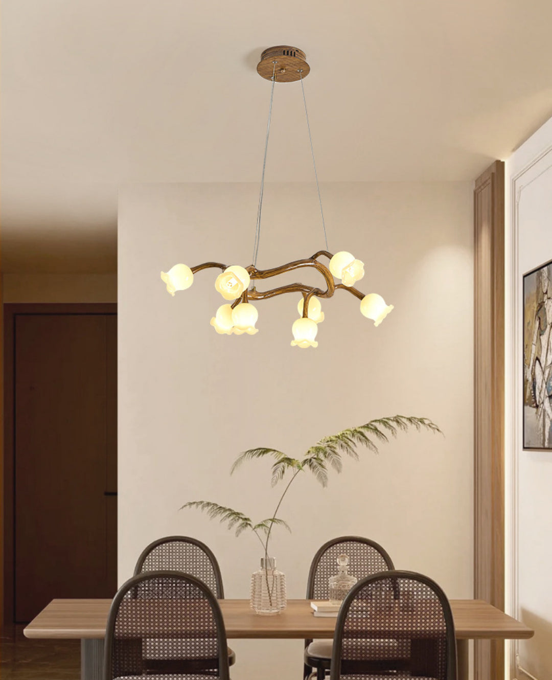 Brighten up any room with our Imitation Wood Fleurs Chandelier! This elegant piece features customizable lighting options that will perfectly complement any decor. Add a touch of warmth and style to your space with this beautiful and versatile chandelier.