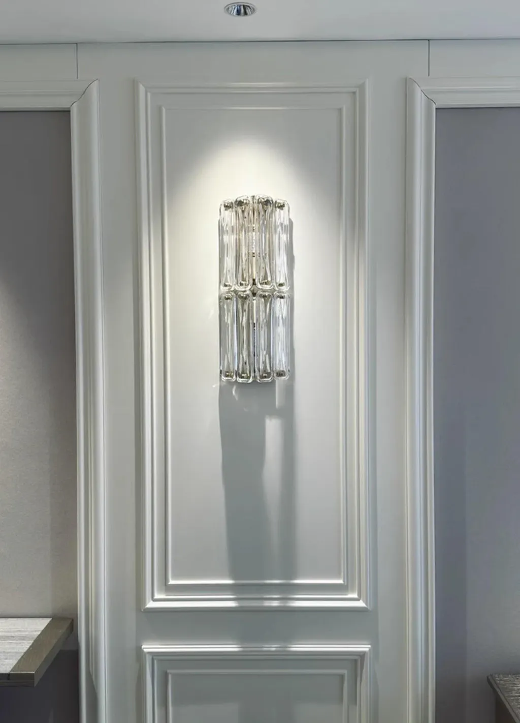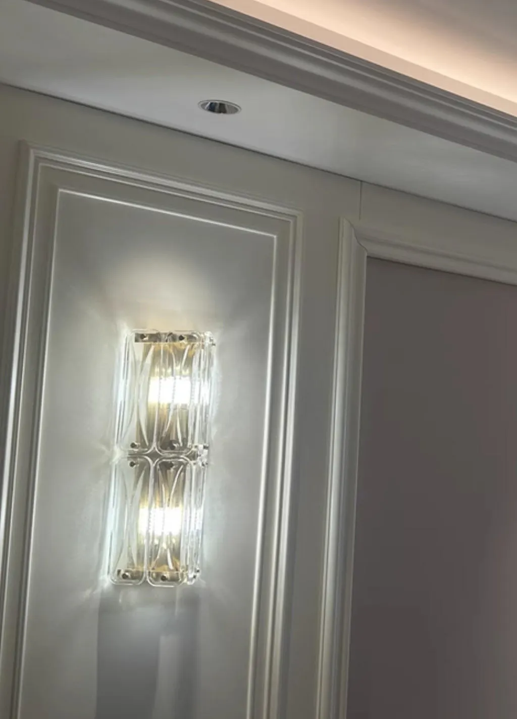 Illuminate your space with warmth and elegance with our Polygonal Crystal Wall Lamp. Made with high-quality metal and copper glass, this lamp radiates a sophisticated charm. Add a touch of luxury to any room and create a cozy ambiance.