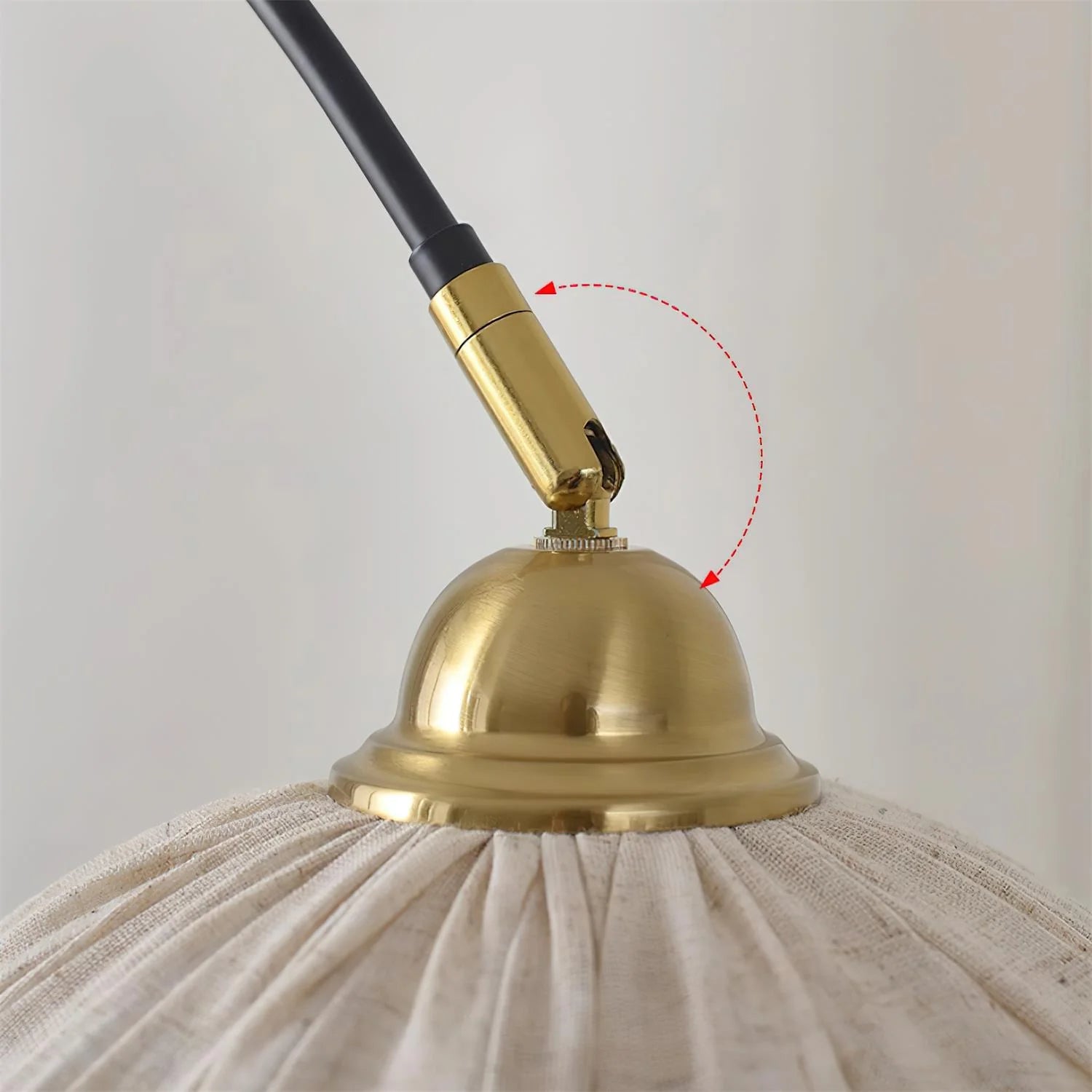 This vintage arc floor lamp features a gracefully curved metal frame and a charming flower-shaped fabric shade with delicate pleated edges. The soft, diffused glow creates a warm and inviting atmosphere, making it an ideal choice for reading corners, living rooms, or bedrooms. Blending classic elegance with functional lighting, this lamp adds a touch of retro charm and artistic flair to any interior.