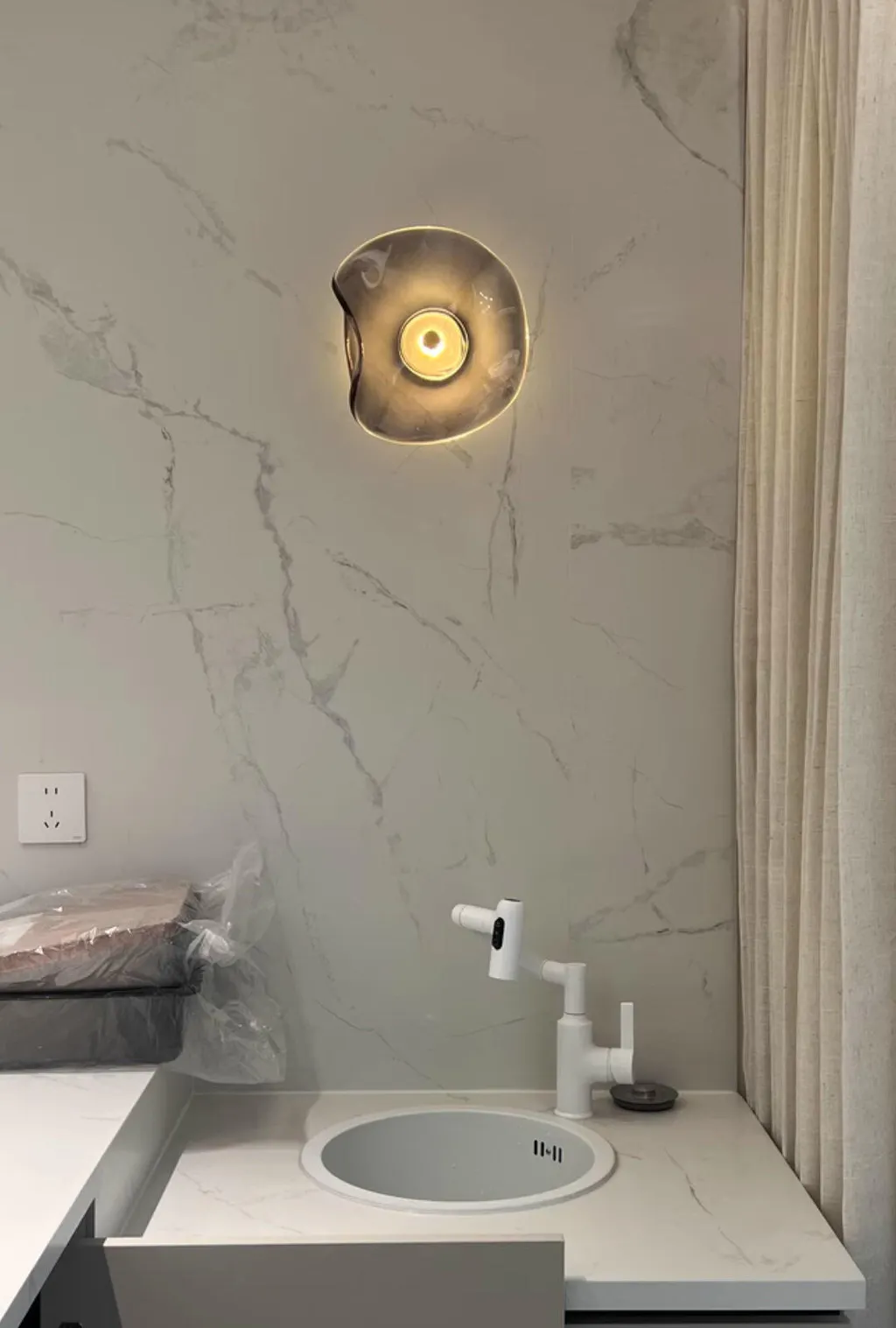 Illuminate your space with the Nordic Round Glass Wall Lamp. With three light colors to choose from and a clear, glass material, this lamp adds a touch of elegance and sophistication to any room. Its crystal-like appearance will bring a sense of luxury and exclusivity to your home.