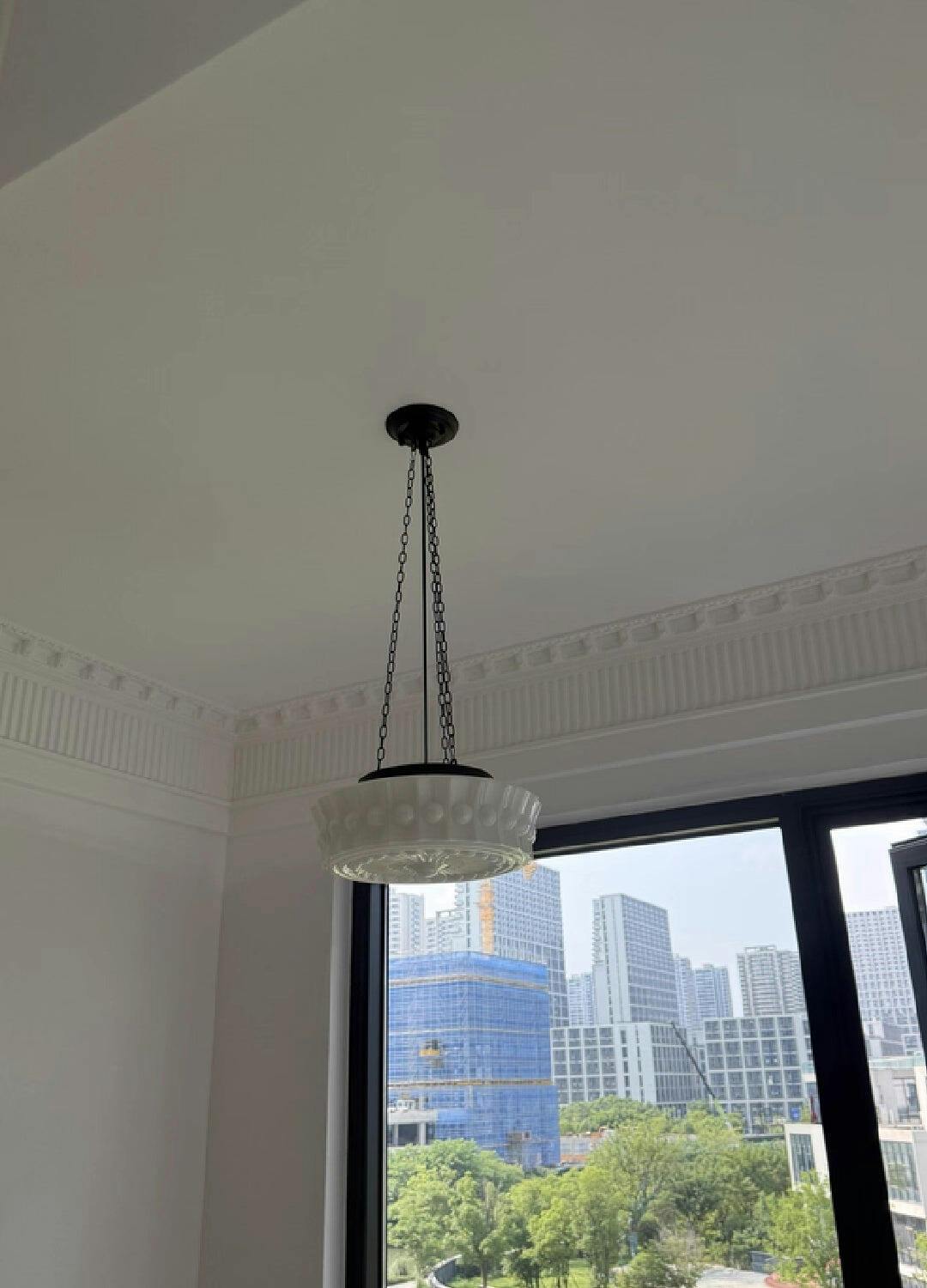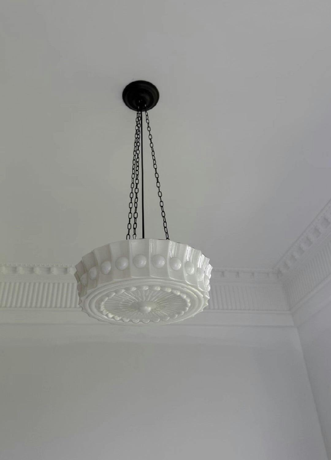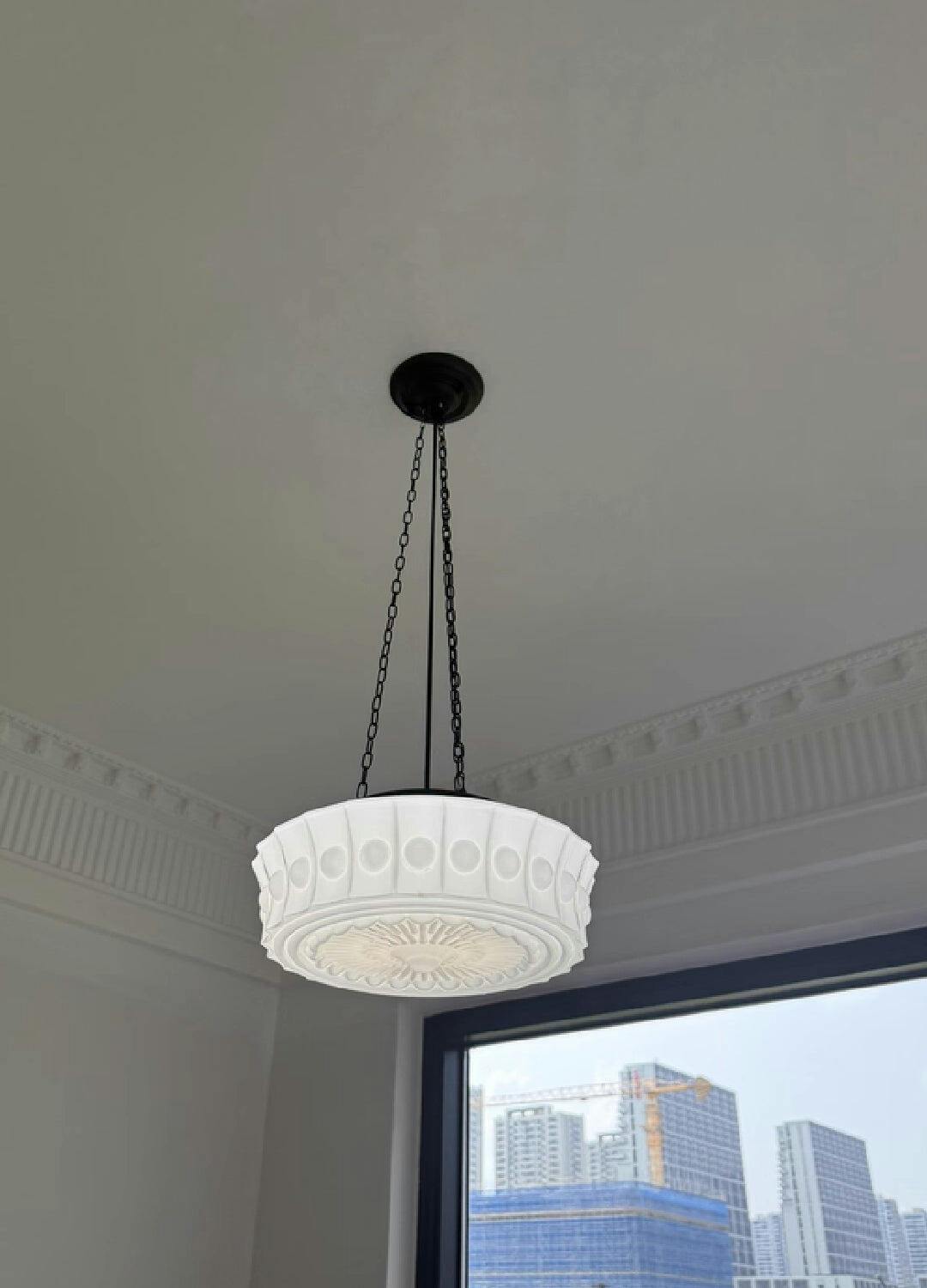 Zen Milk Glass Pendant Light decorates the French bedroom