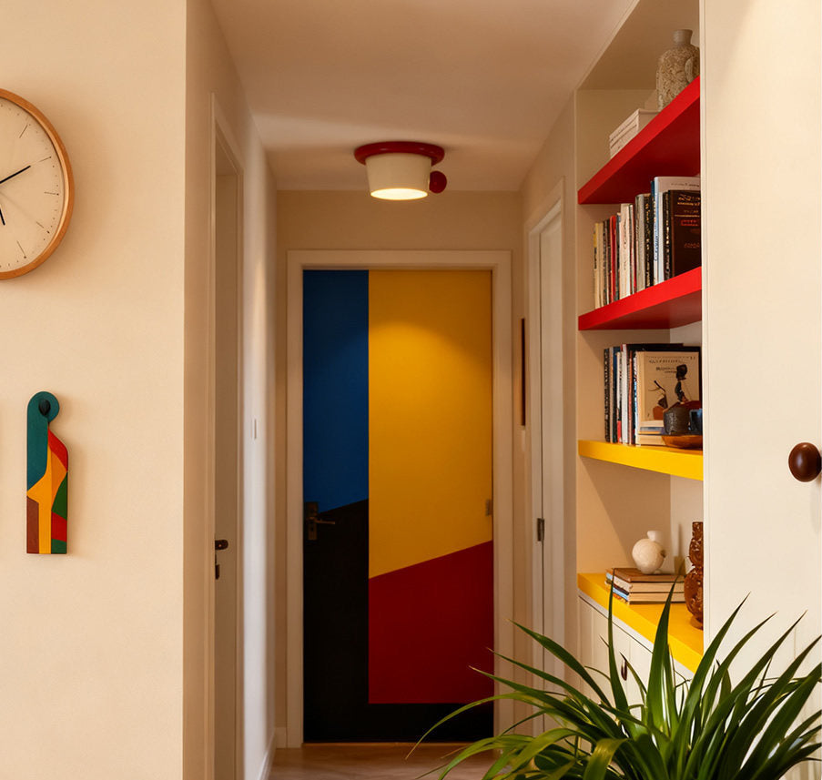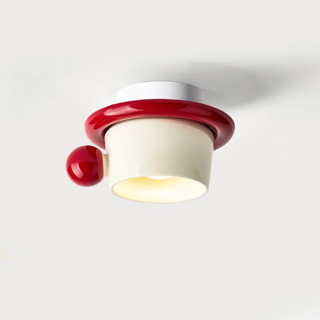 Designed as a surface-mounted ceiling lamp, it provides focused ambient lighting suitable for smaller spaces such as kitchens, hallways, cafés, or creative interiors. The form balances decorative character with everyday functionality, making it both a lighting fixture and a visual accent.