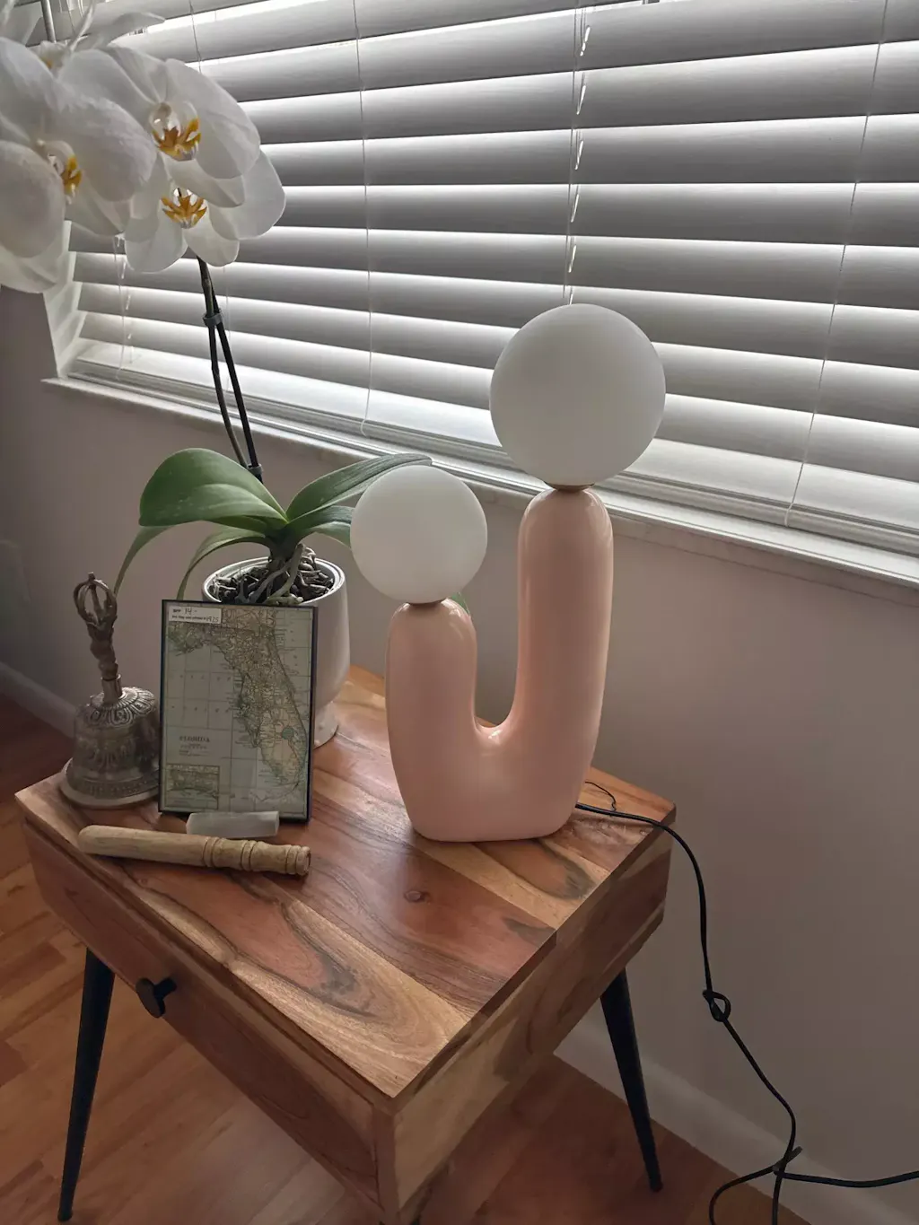 This lamp adds a touch of elegance to my living room. The design is unique, and the light it emits is just perfect. Highly recommended!