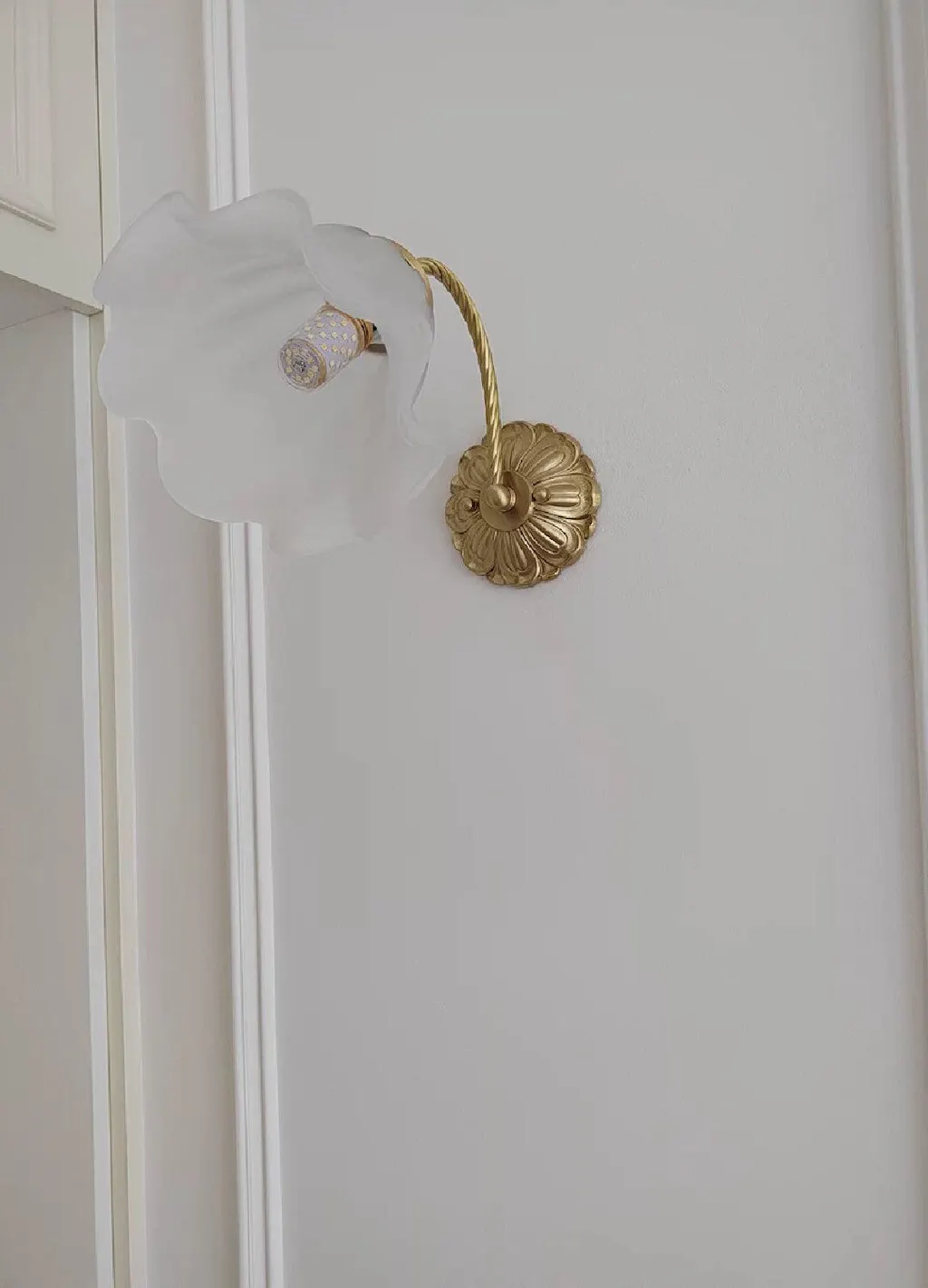 A Plaster wall lamp with white is near the kitchen
