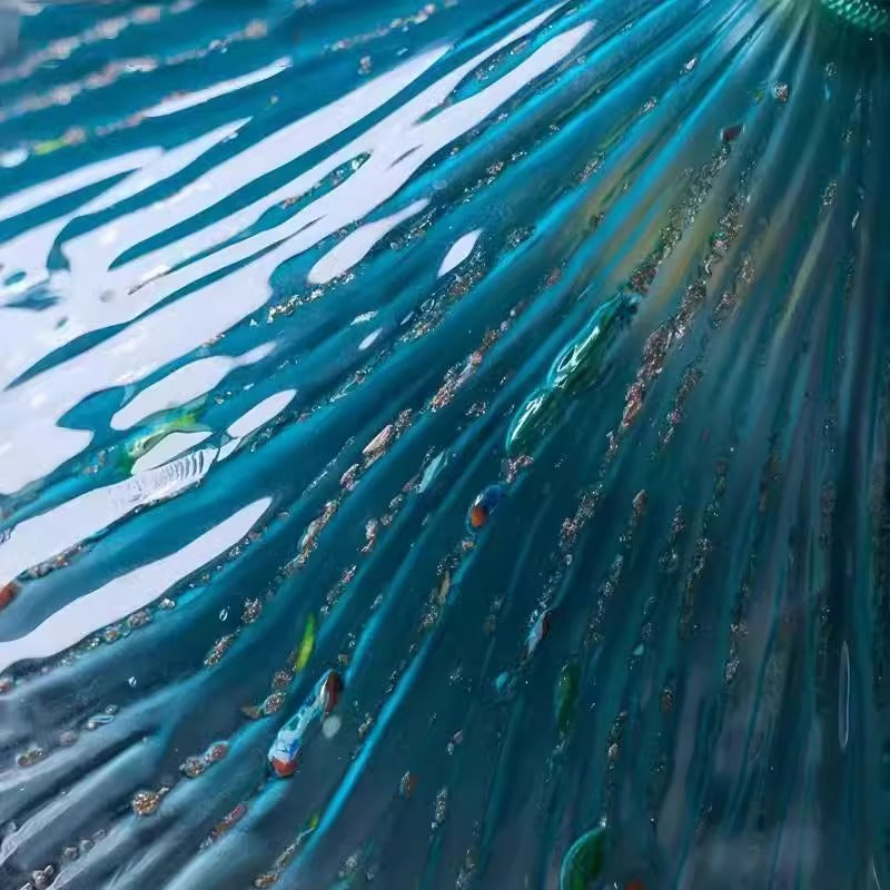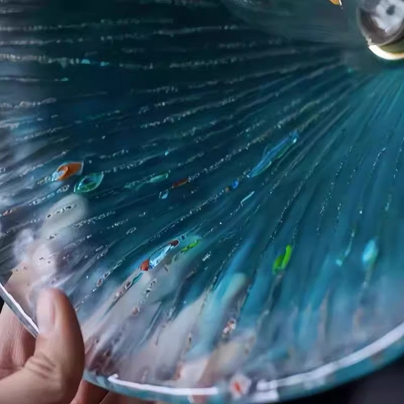 La suspension Retro Fantasy est dotée d'un abat-jour en verre soufflé à la main aux délicates textures ondulées et à la teinte bleue onirique évoquant les vagues de l'océan. Chaque pièce est fabriquée artisanalement, ce qui rend chaque lampe unique. L'alliance de fixations en laiton vieilli et d'un câble en tissu torsadé lui confère un charme nostalgique, idéal pour créer une ambiance chaleureuse et artistique dans les salles à manger, les cafés ou les coins cosy.