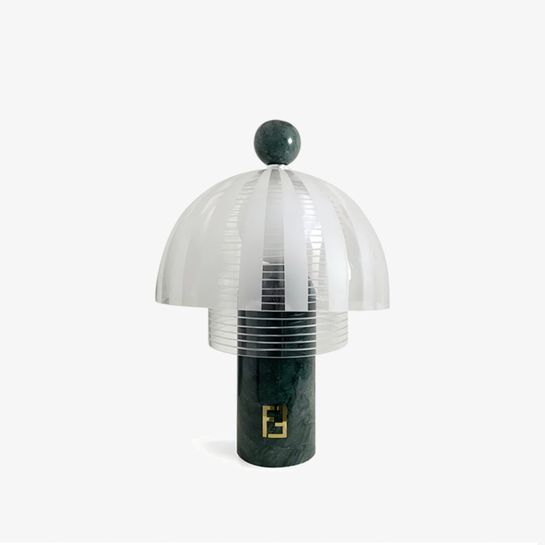 La lampe de table Mick est dotée d'un remarquable socle en marbre vert paon, alliant durabilité et élégance. Son design raffiné offre non seulement un support robuste, mais ajoute également une touche sophistiquée à tout intérieur, la rendant idéale pour les décorations modernes comme classiques.