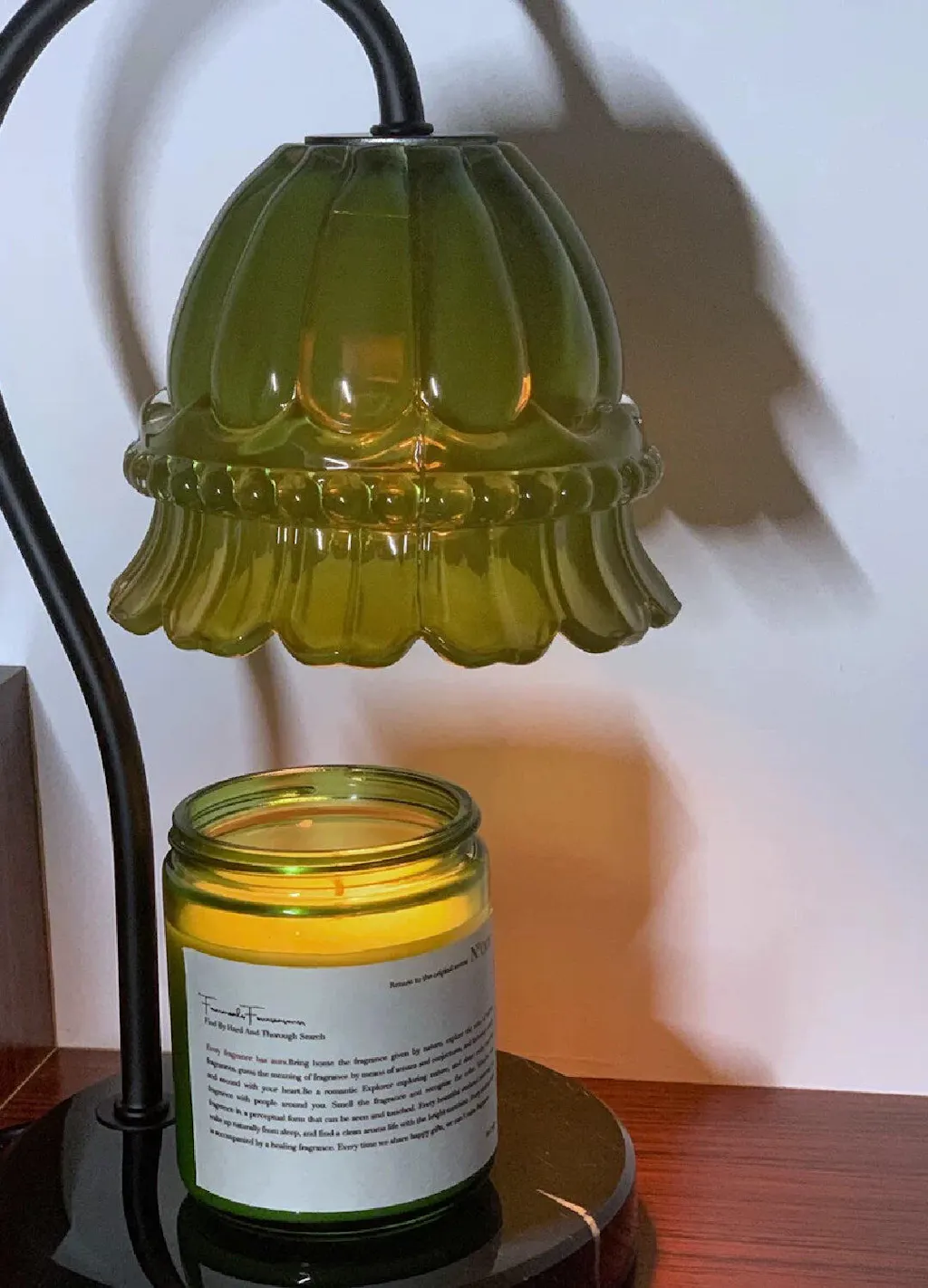 This candle warmer table lamp is just perfect. The tulip design is charming, and it does a great job warming my candles. The light it emits is gentle and creates a nice ambiance in the room.