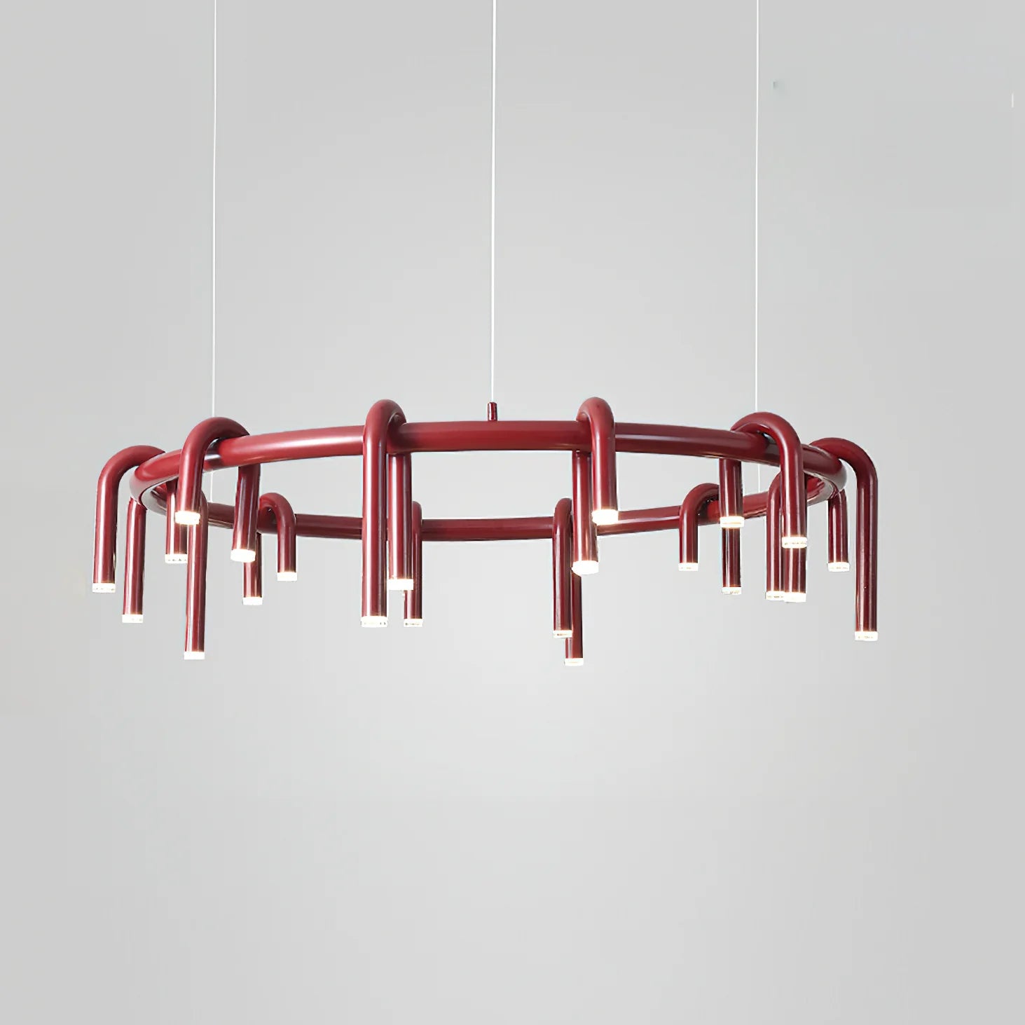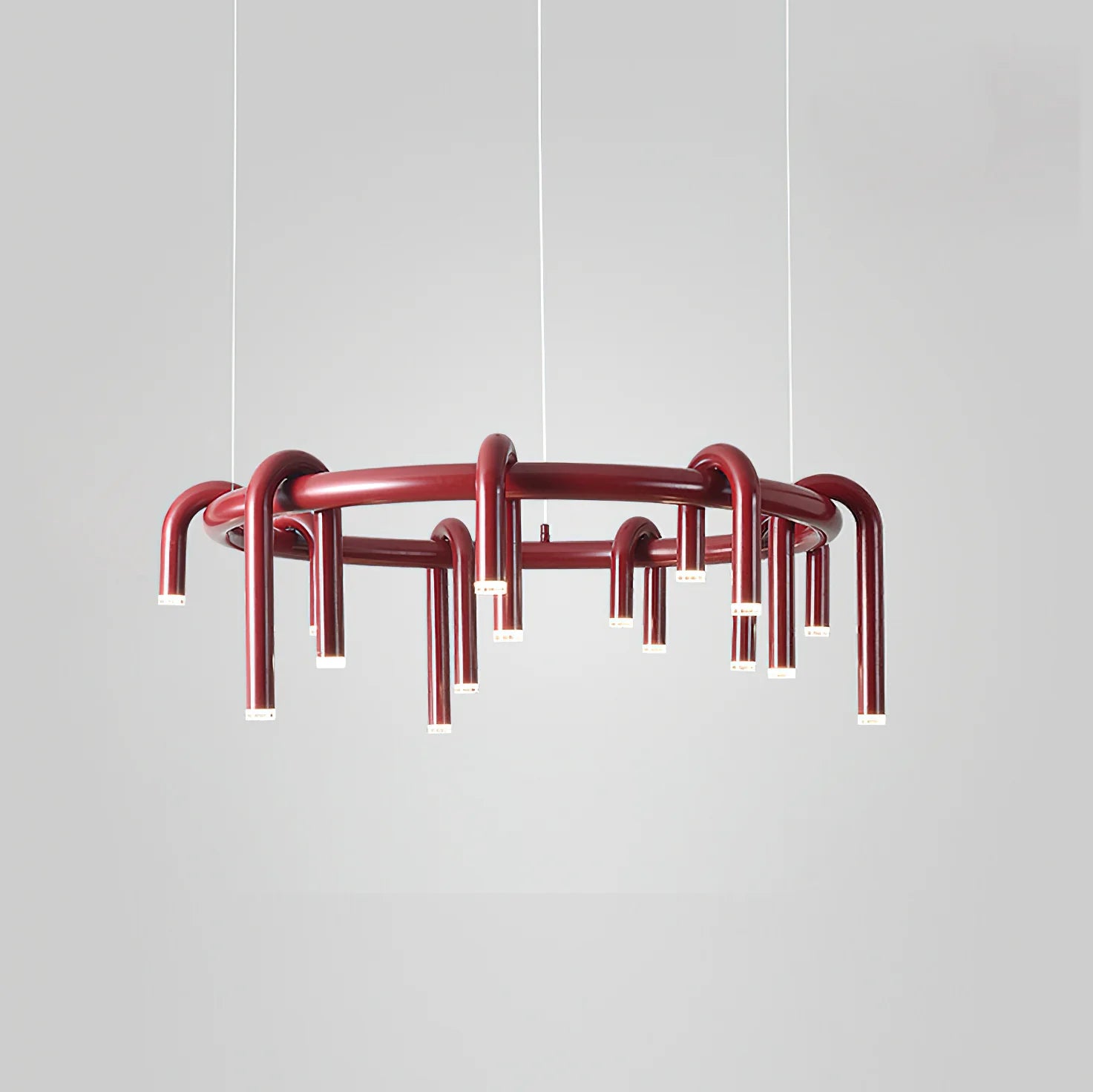 Verfraai uw ruimte met deze moderne rode U-vormige kroonluchter, ontworpen om een gedurfde statement te maken. De strakke, eigentijdse vorm voegt levendige kleuren en artistieke flair toe en creëert een boeiend middelpunt dat de sfeer van elke kamer verbetert. Perfect voor wie op zoek is naar een stijlvolle mix van innovatie en elegantie.
