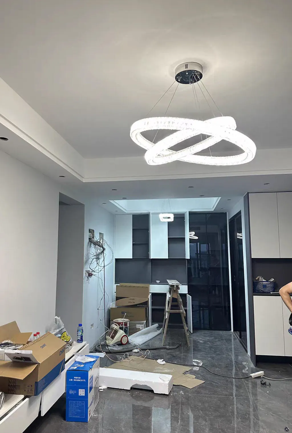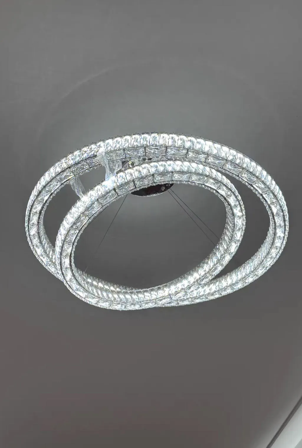 This chandelier exceeded my expectations! The Halo Crystal Chandelier is both elegant and modern. The crystals are clear and brilliantly reflective. It was well-packaged and easy to install. It adds a beautiful focal point to my foyer. Highly recommended!