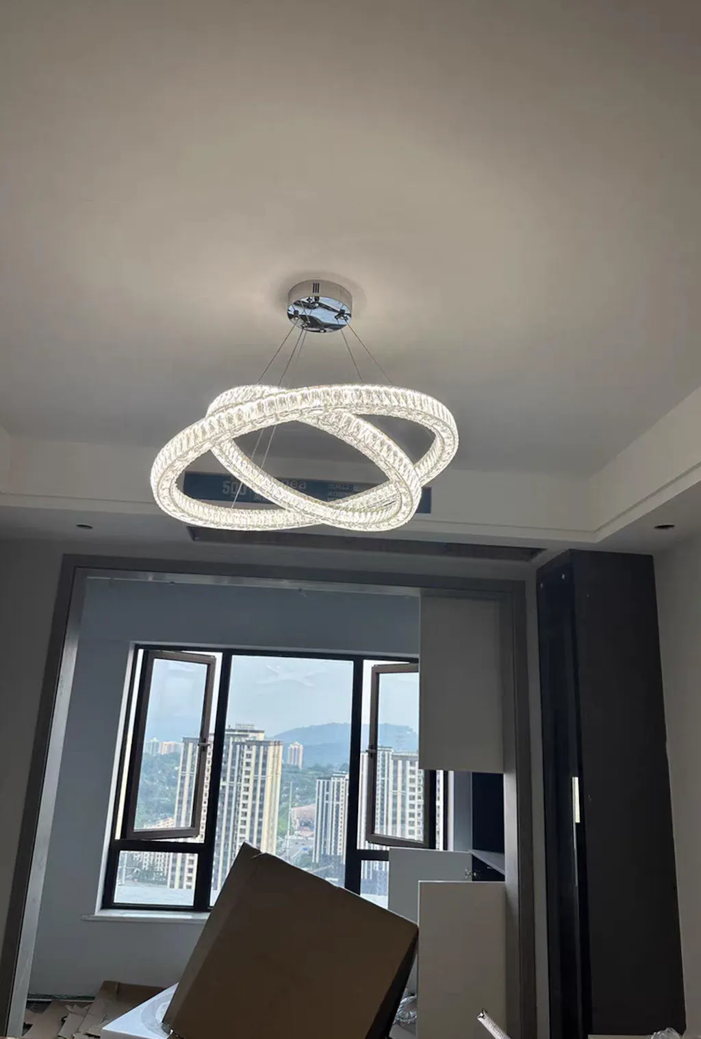 I love my new Halo Crystal Chandelier! The design is sleek, and the crystals add a touch of sophistication to my dining area. It was relatively easy to put up, and the instructions were clear. The quality is evident in the details. I'm very happy with this purchase!