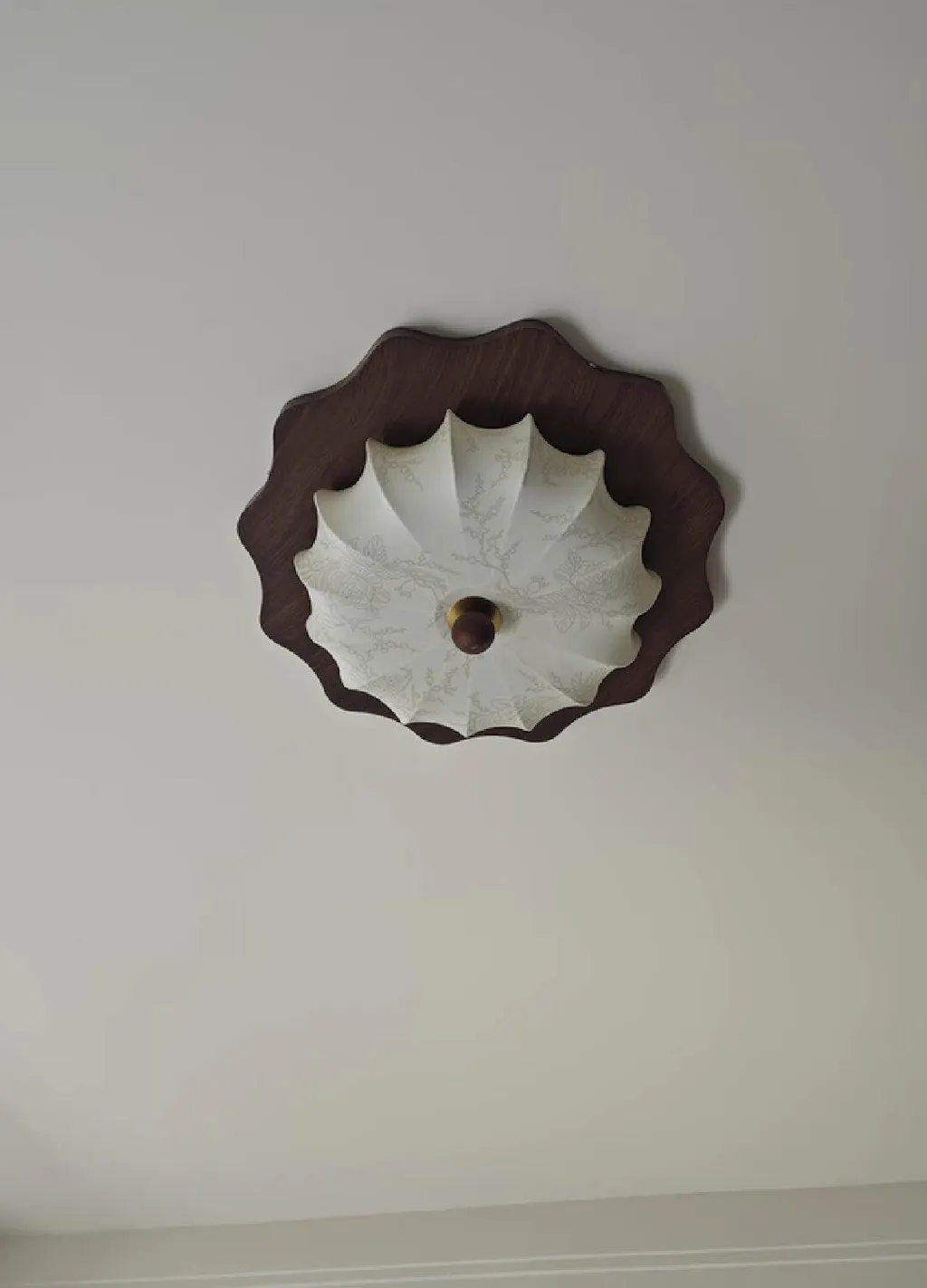 Gorgeous design and excellent materials. The metal/fabric/wood mix feels luxe and yet grounded. Makes my bedroom ceiling feel very high end.