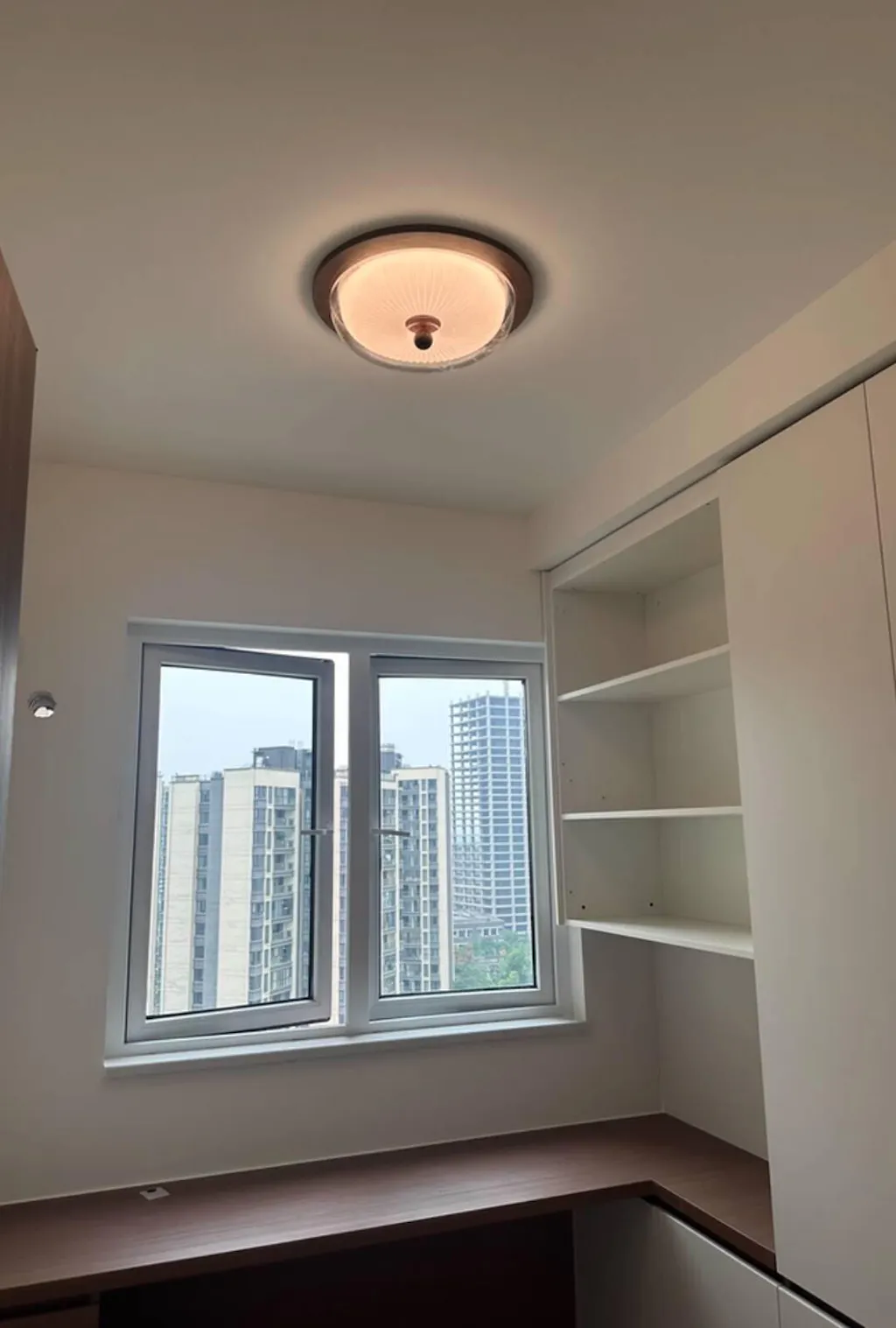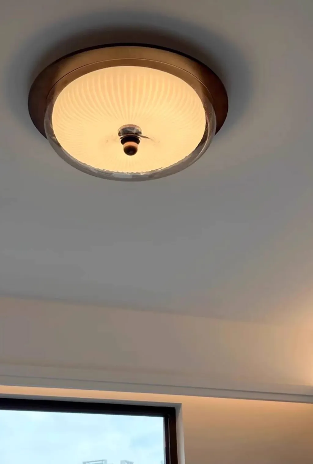 The height of the lamp keeps the ceiling feeling open but the design draws the eye upward in a good way.