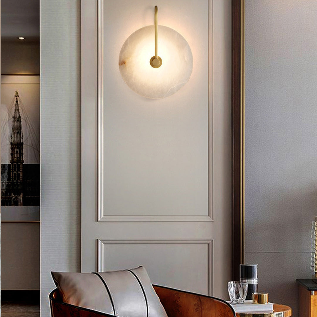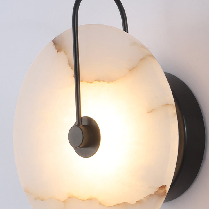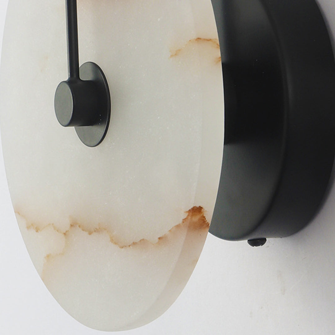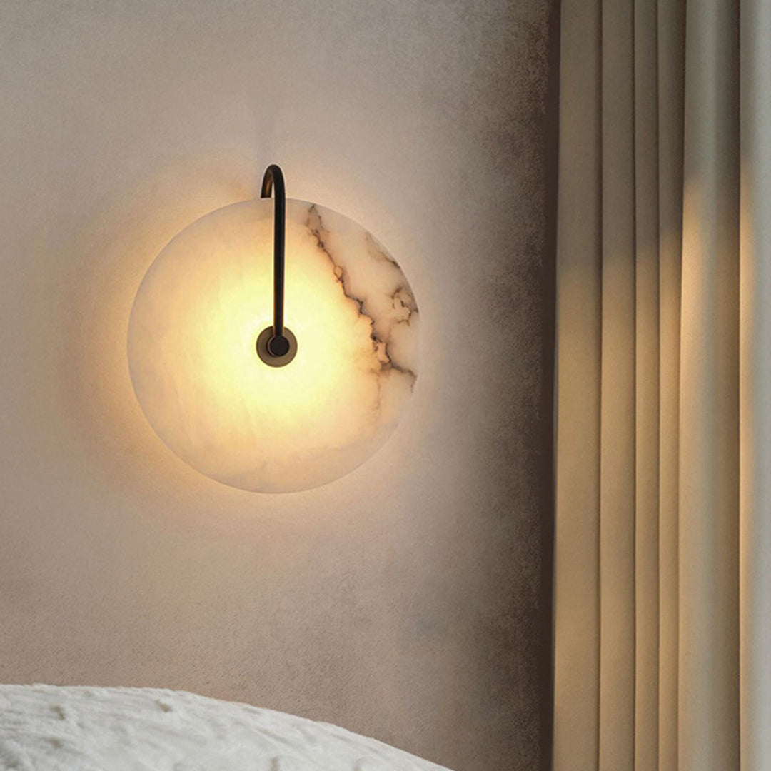 Light up your space with our Alabaster Wall Lamp. Crafted from luxurious alabaster and black metal, this elegant fixture will lend a modern and sophisticated look to your room! Create your perfect ambiance today!