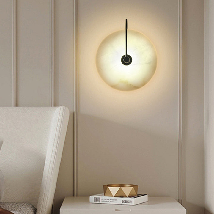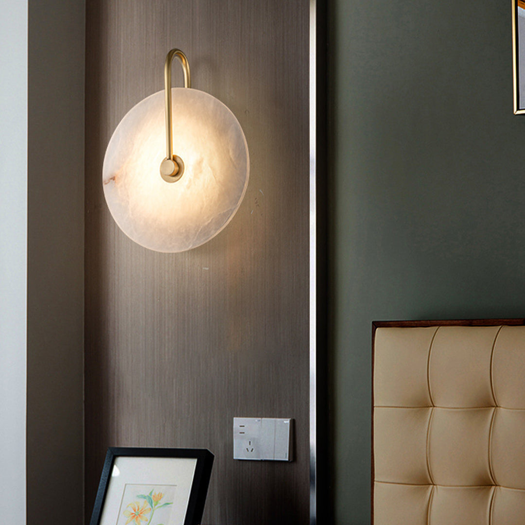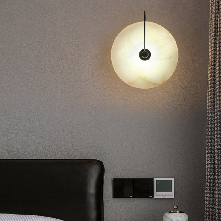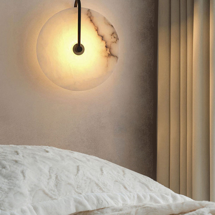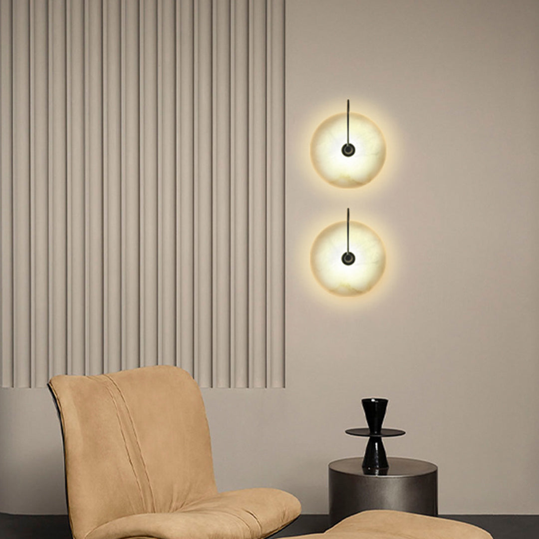 Light up your space with our Alabaster Wall Lamp. Crafted from luxurious alabaster and black metal, this elegant fixture will lend a modern and sophisticated look to your room! Create your perfect ambiance today!