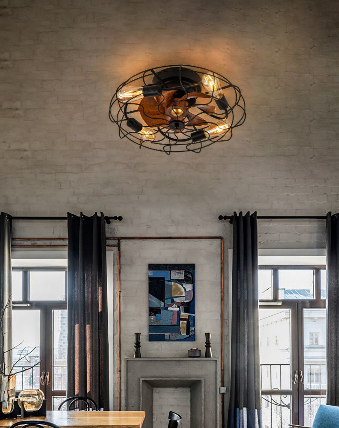 The American Industry Ceiling Fan Light features a vintage design inspired by American craftsmanship. Add a touch of history to your space while enjoying a cool breeze from its efficient fan. Made with traditional techniques, this fan light brings a sense of nostalgia while maintaining functionality.