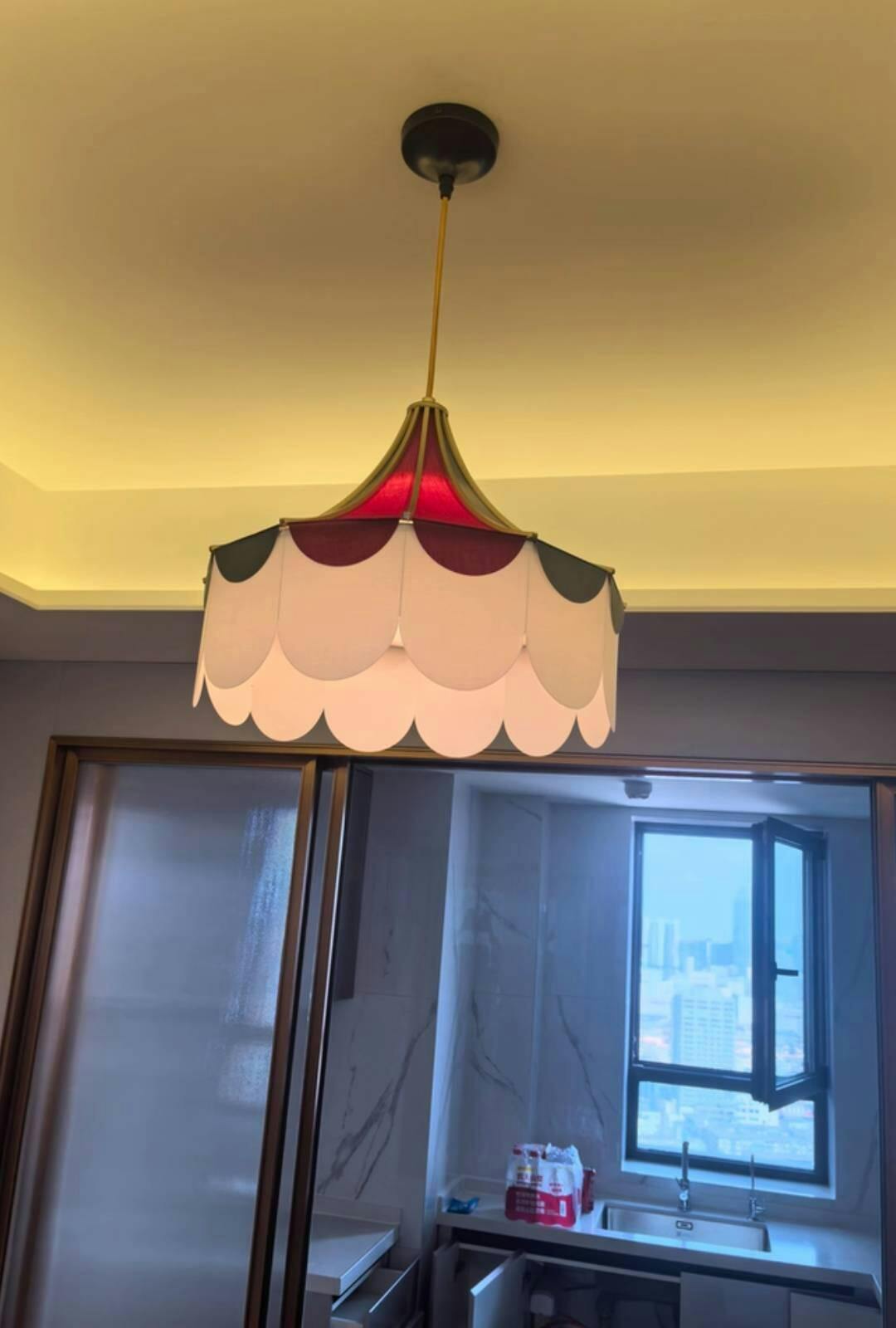 Crafted from soft, high-quality fabric, the tent-like design diffuses light gently, casting a warm and inviting glow. Whether hung in a children’s room, creative studio, or a fun-themed dining area, this lamp instantly adds personality and color to any setting.