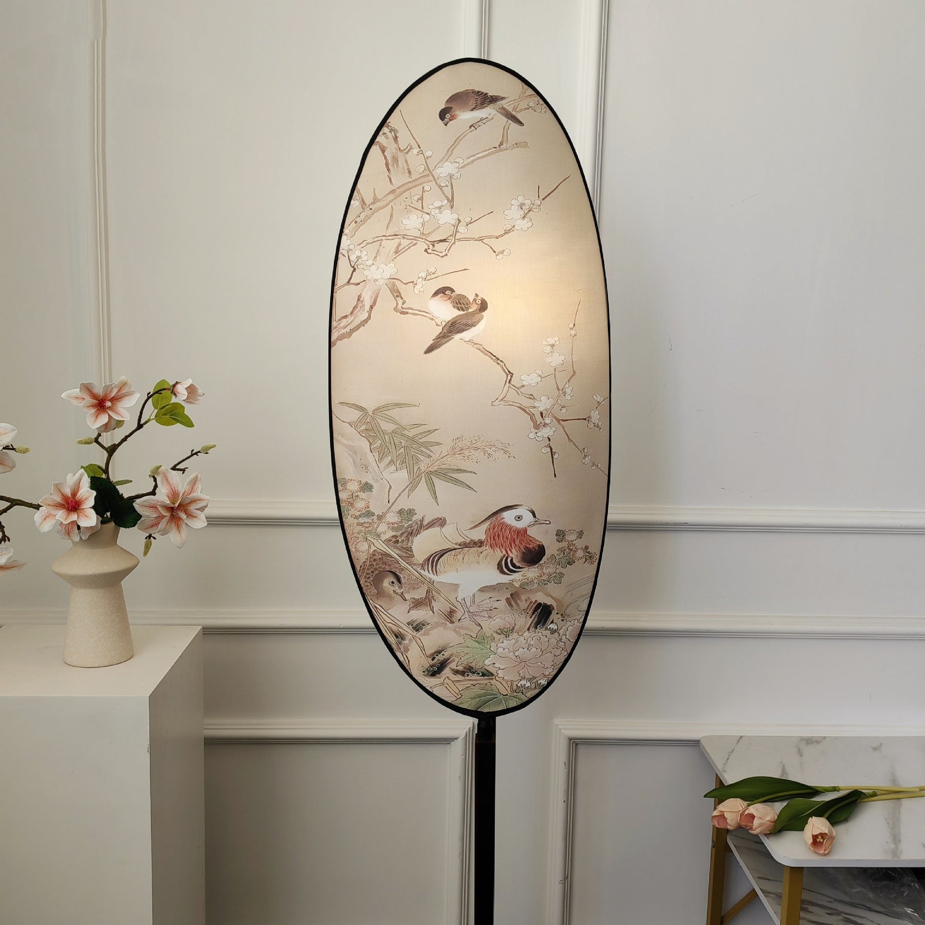 Illuminate your space with elegance using the Classical Bird Painting Floor Lamp. This lamp features a traditional, Zen-inspired design with a beautiful bird painting on the fabric shade. Its timeless and tasteful style will add a touch of sophistication to any room. Perfect for art lovers and those who appreciate refined decor.