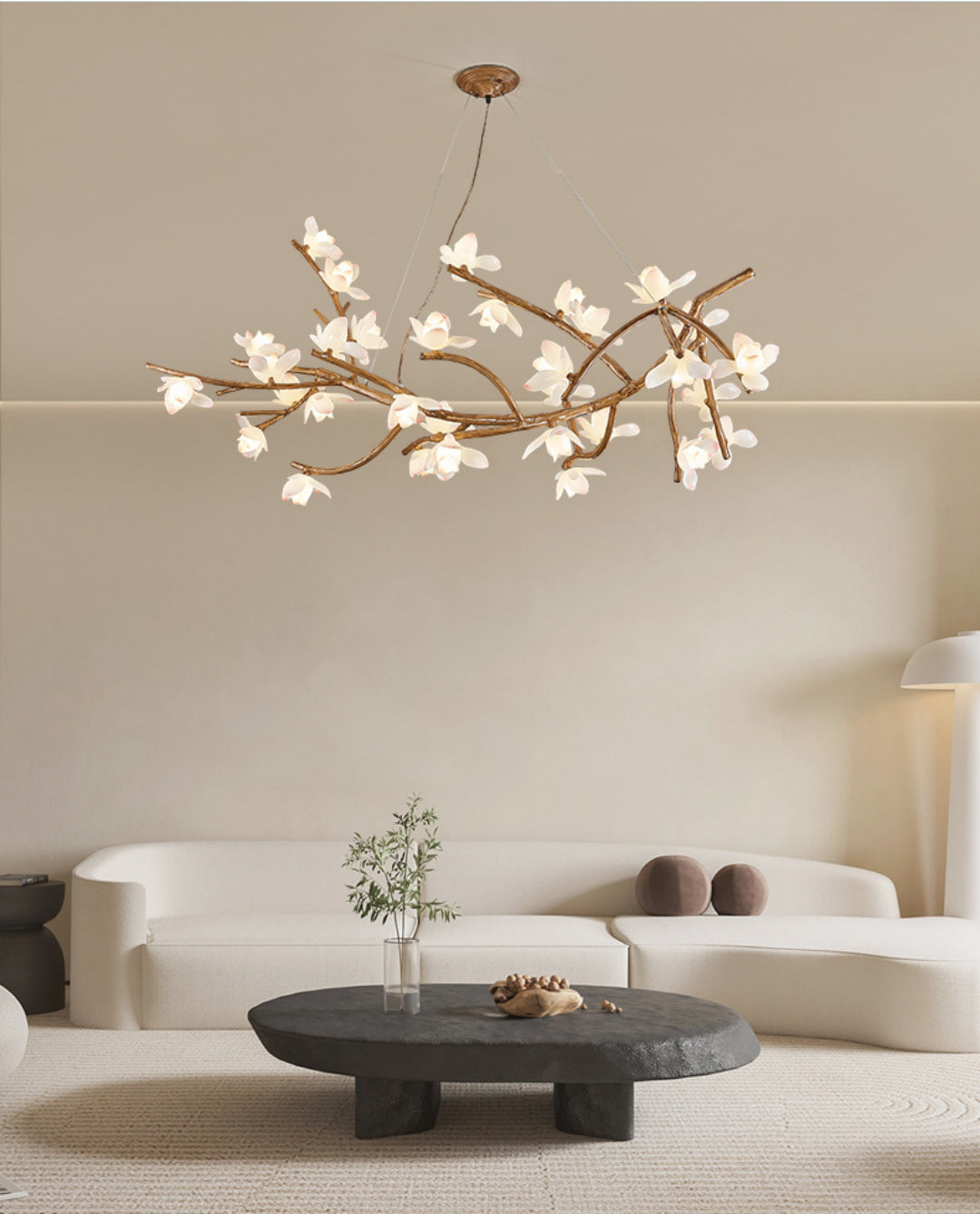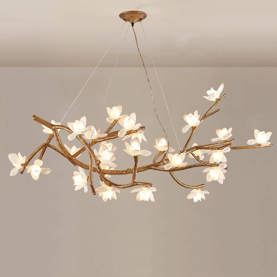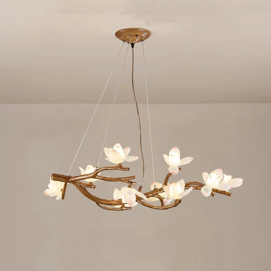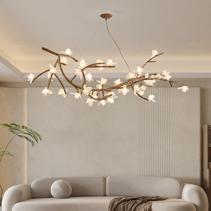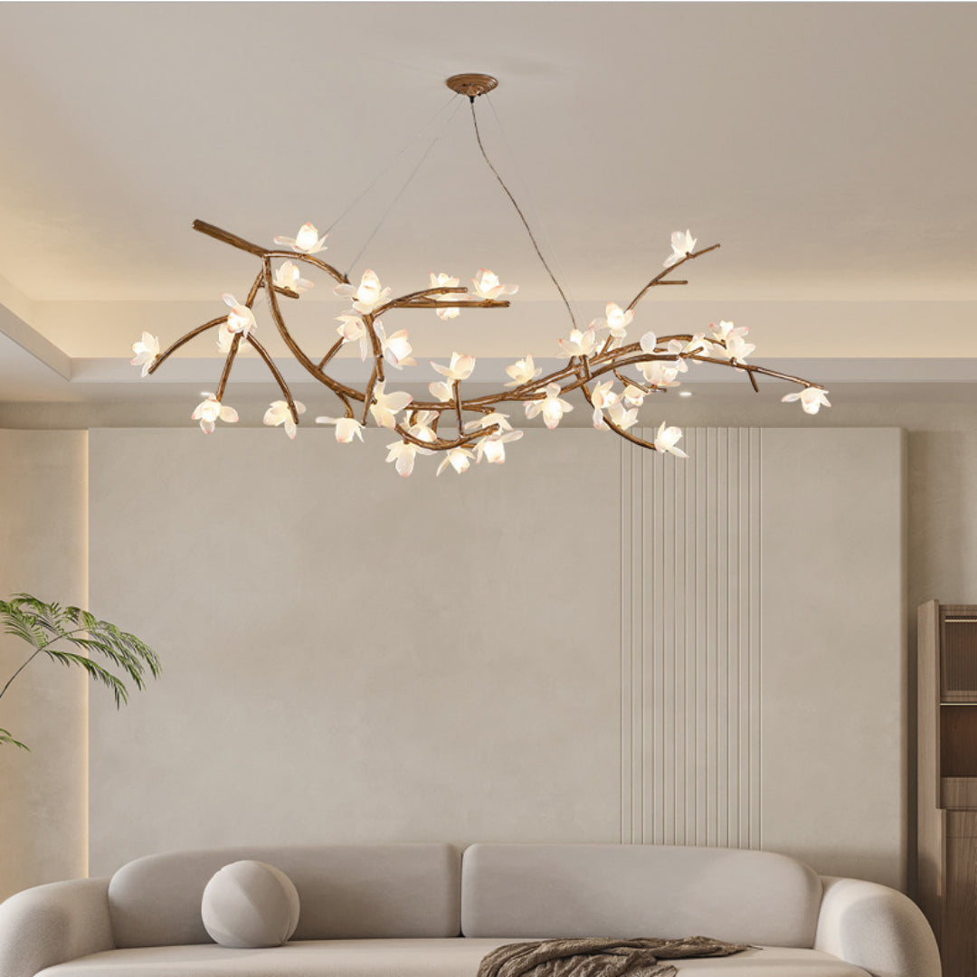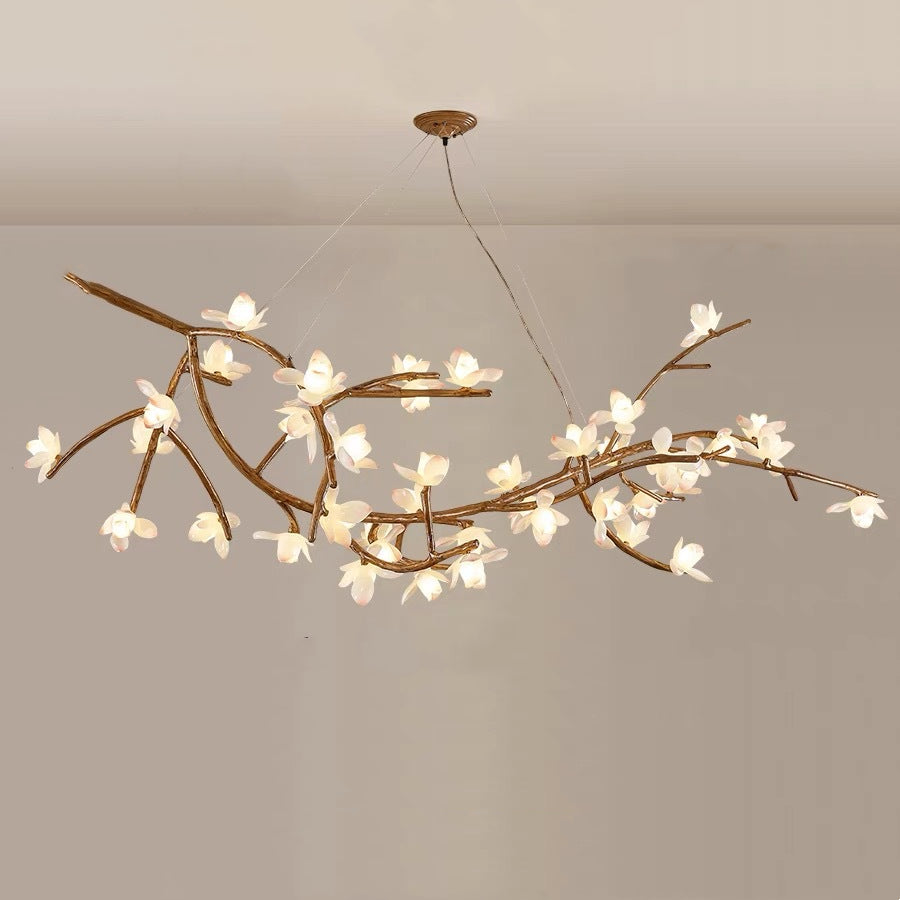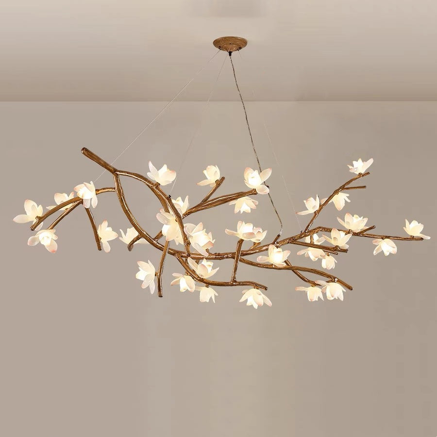 Effortlessly elevate your space with our Lotus Imitation Wood Chandelier. Crafted from a new type of high-molecular polymer material, each branch is uniquely designed to resemble the natural beauty of tree branches, adding a touch of vintage charm. Its intricate texture is sure to bring a sense of elegance and sophistication to any room.