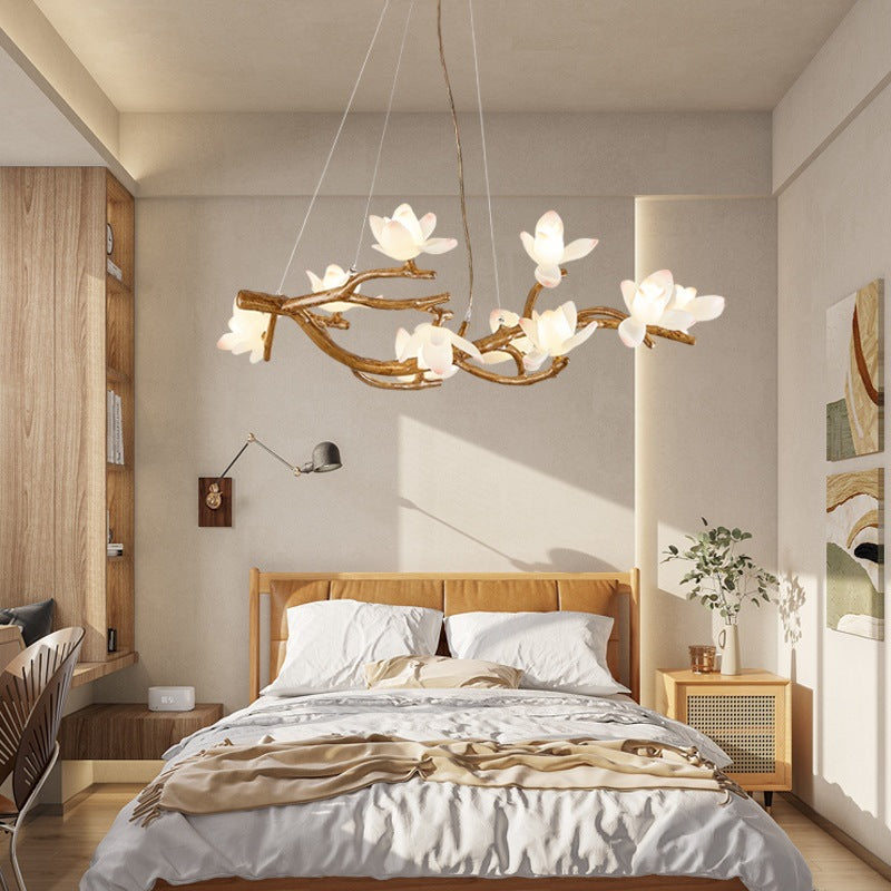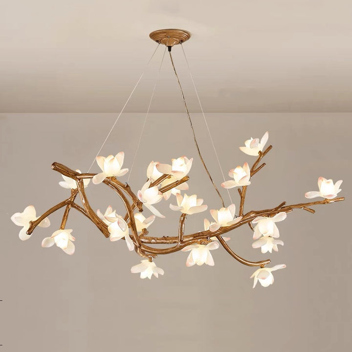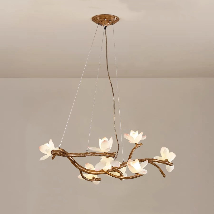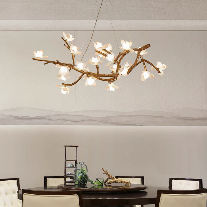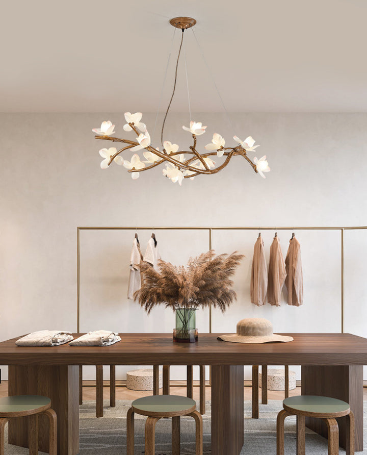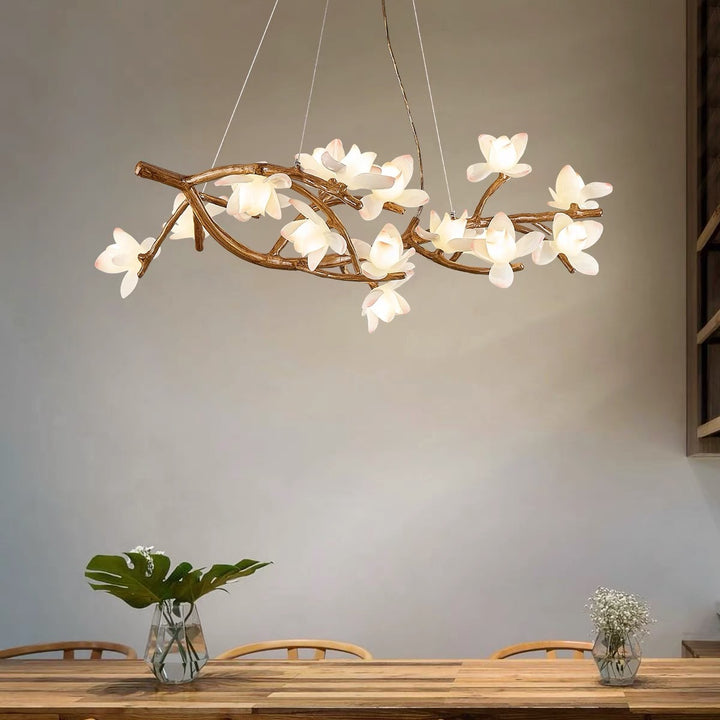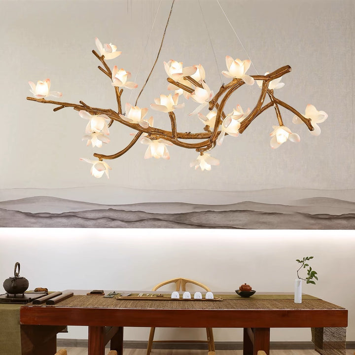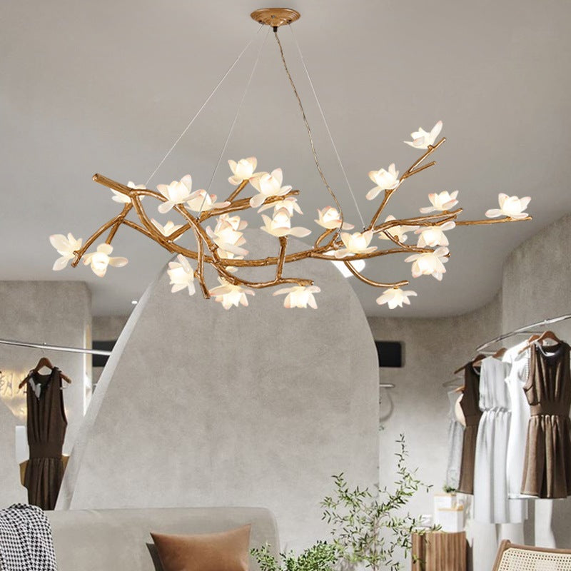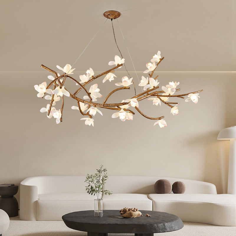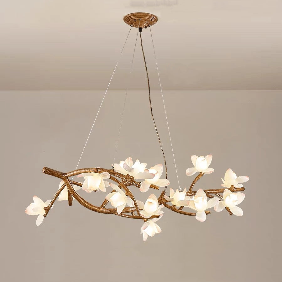 Effortlessly elevate your space with our Lotus Imitation Wood Chandelier. Crafted from a new type of high-molecular polymer material, each branch is uniquely designed to resemble the natural beauty of tree branches, adding a touch of vintage charm. Its intricate texture is sure to bring a sense of elegance and sophistication to any room.