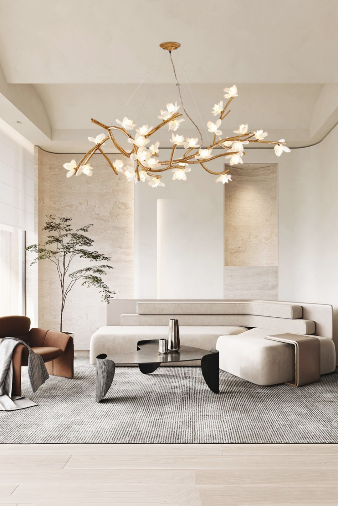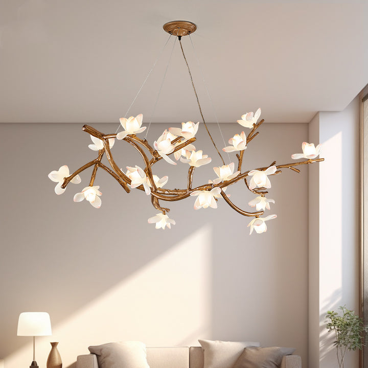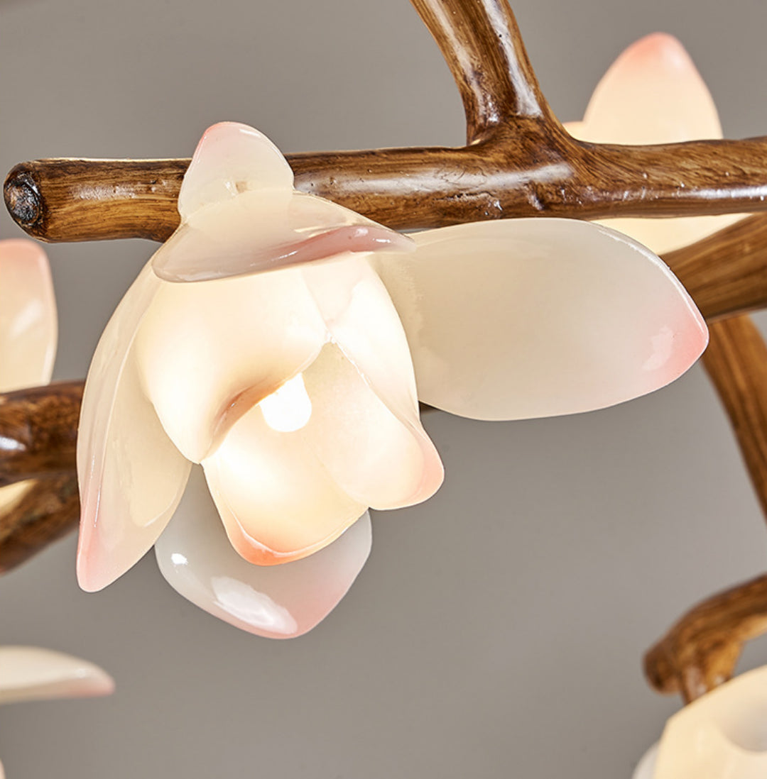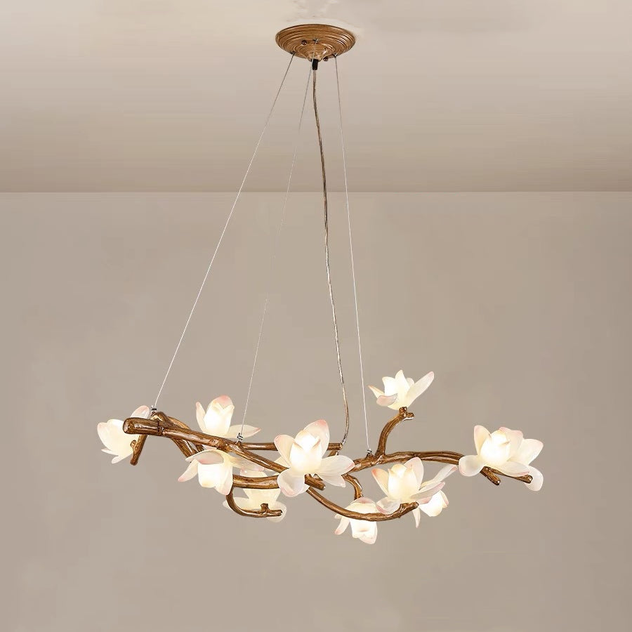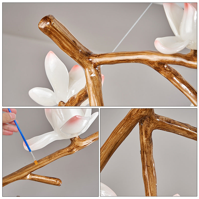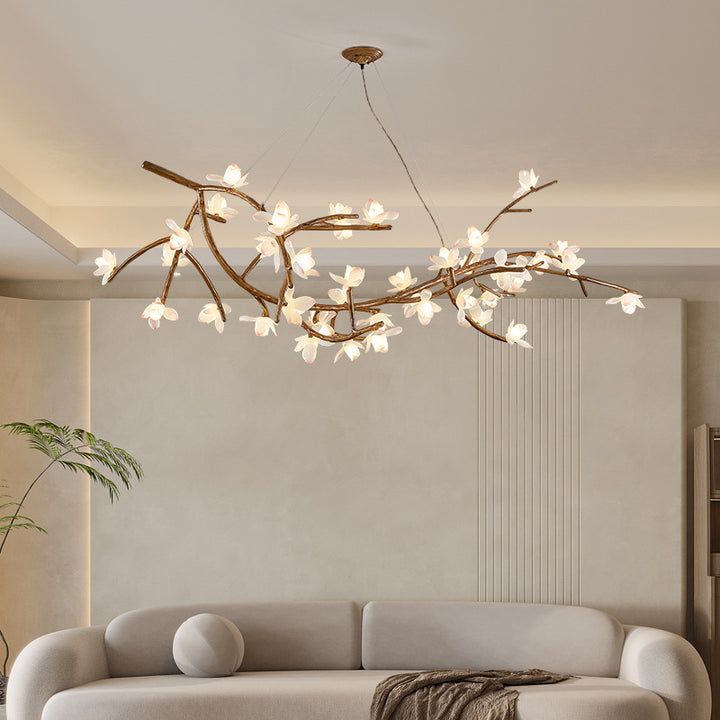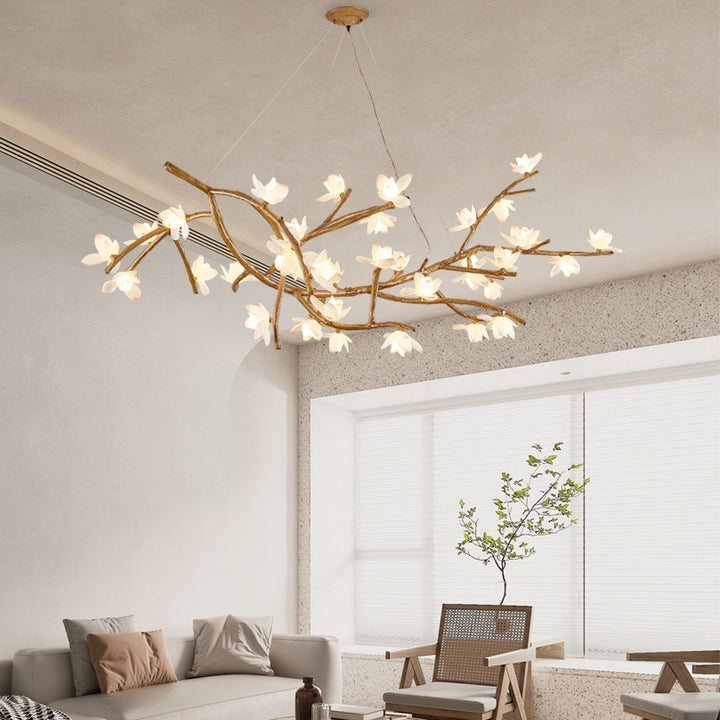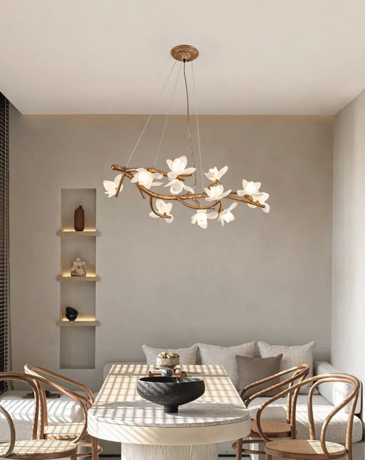 Effortlessly elevate your space with our Lotus Imitation Wood Chandelier. Crafted from a new type of high-molecular polymer material, each branch is uniquely designed to resemble the natural beauty of tree branches, adding a touch of vintage charm. Its intricate texture is sure to bring a sense of elegance and sophistication to any room.