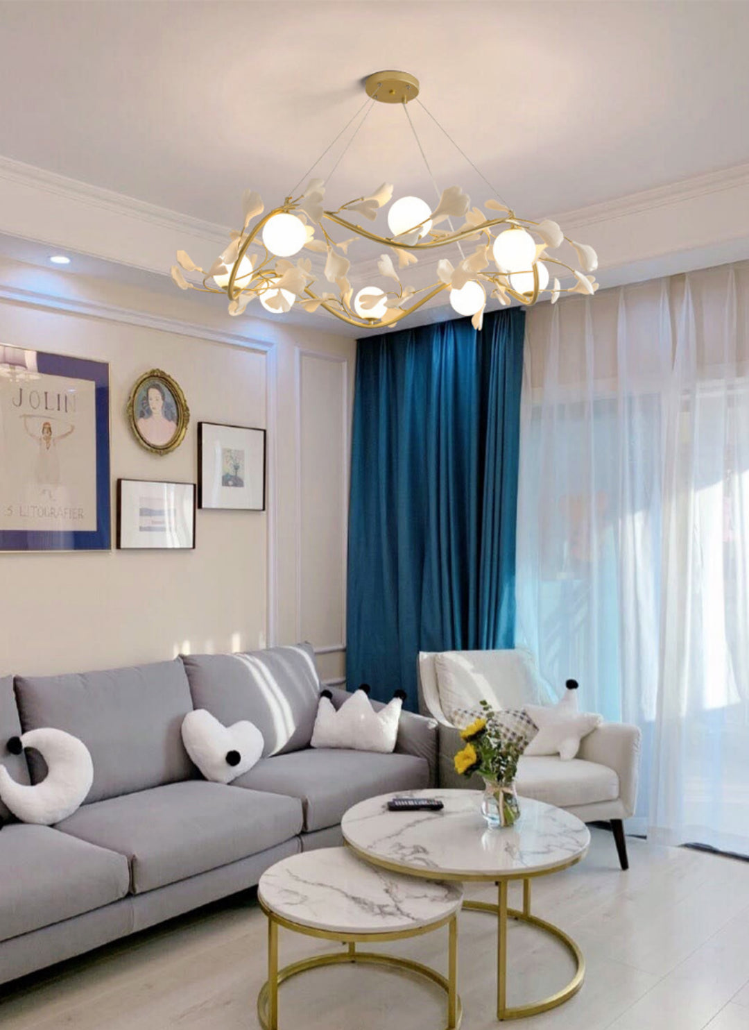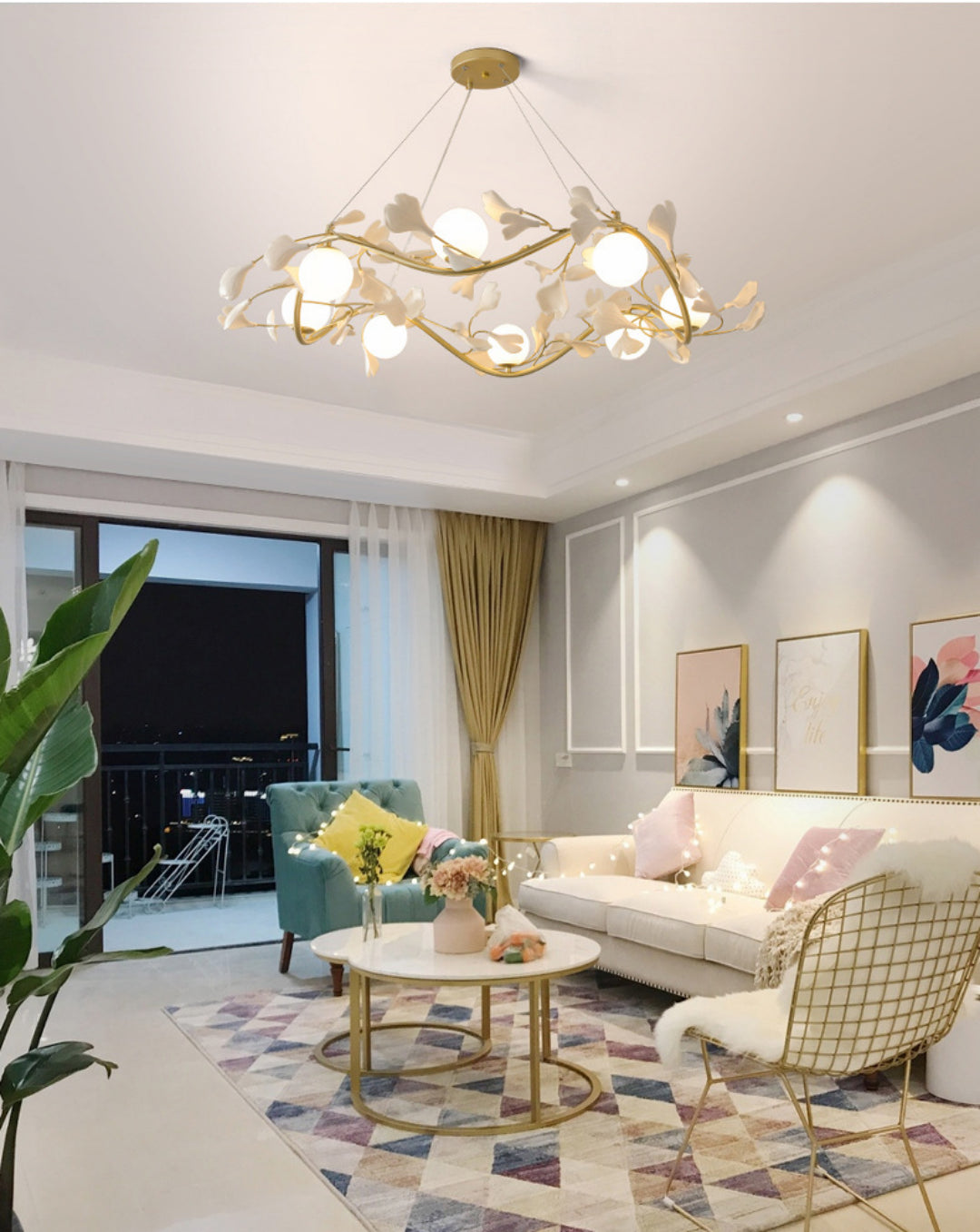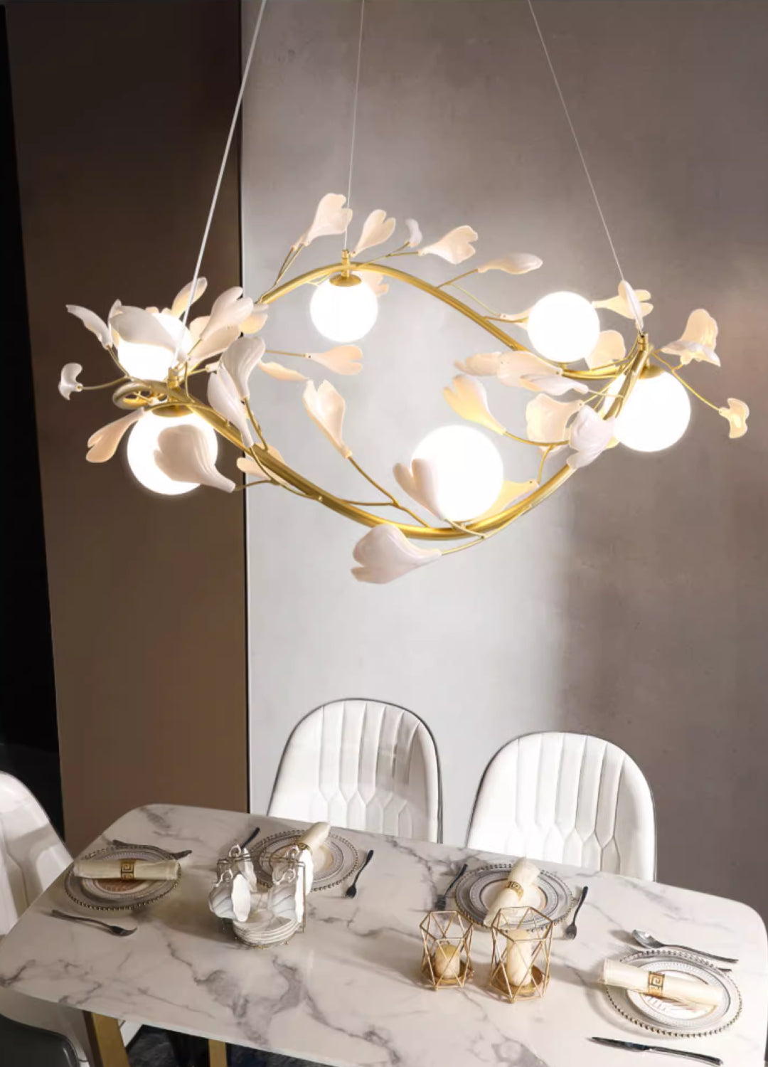 For a whimsical addition to your environment, look no further than the Modern Ball Gingko Chandelier A. Great for adding character to dining areas, family rooms, and spacious interiors, this chandelier adds an element of surprise and fascination.