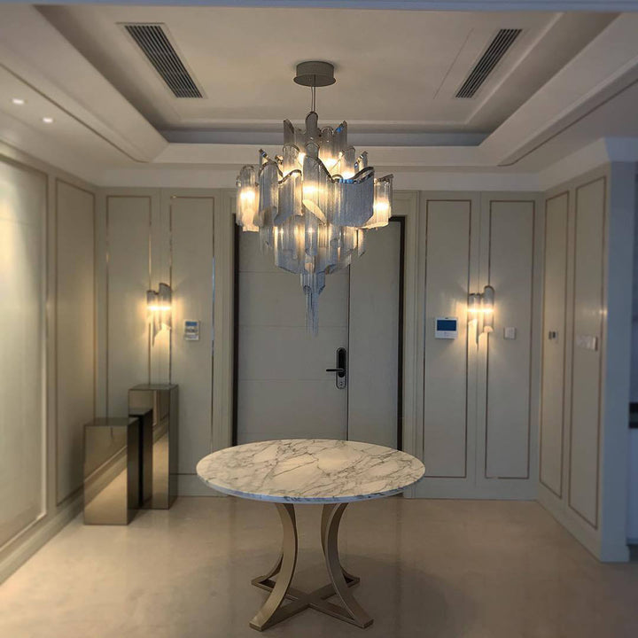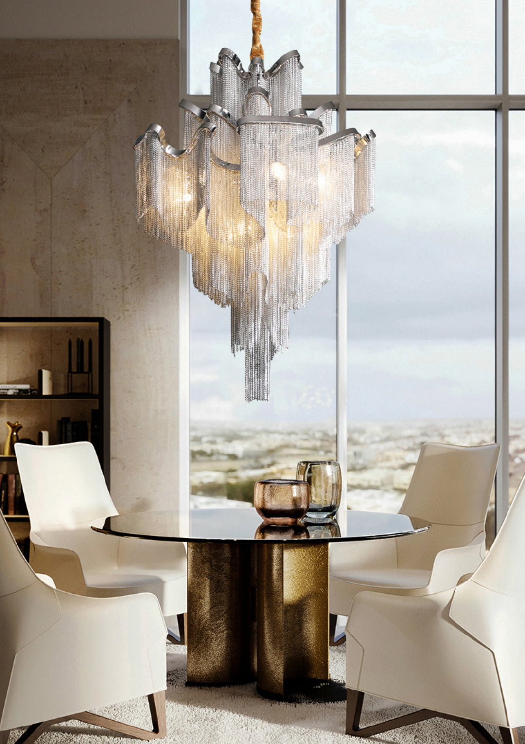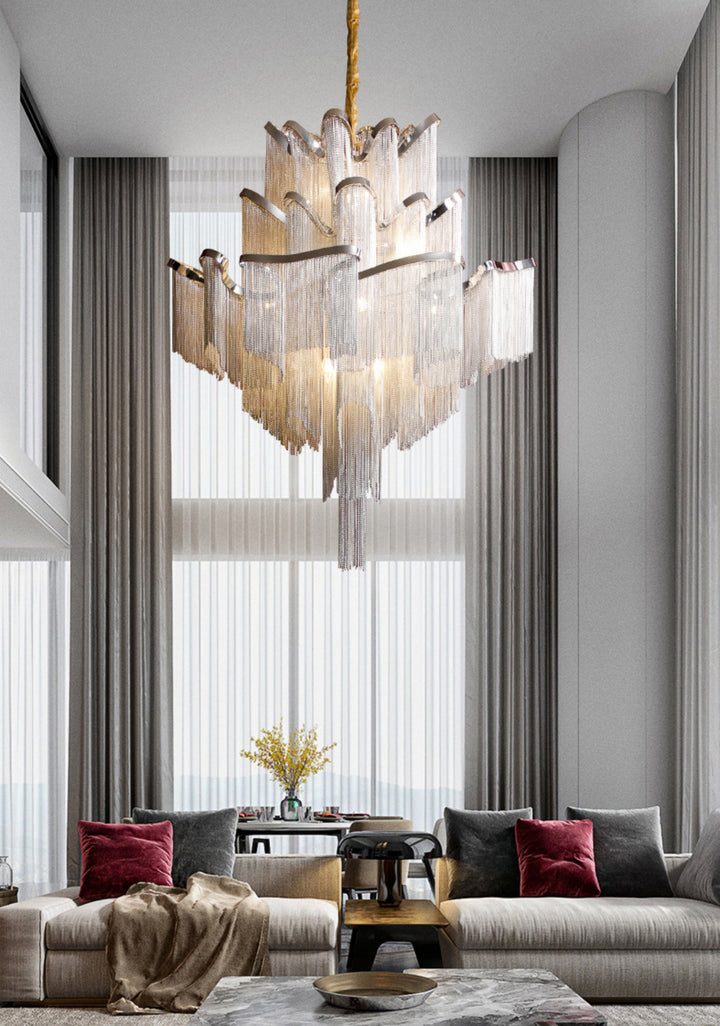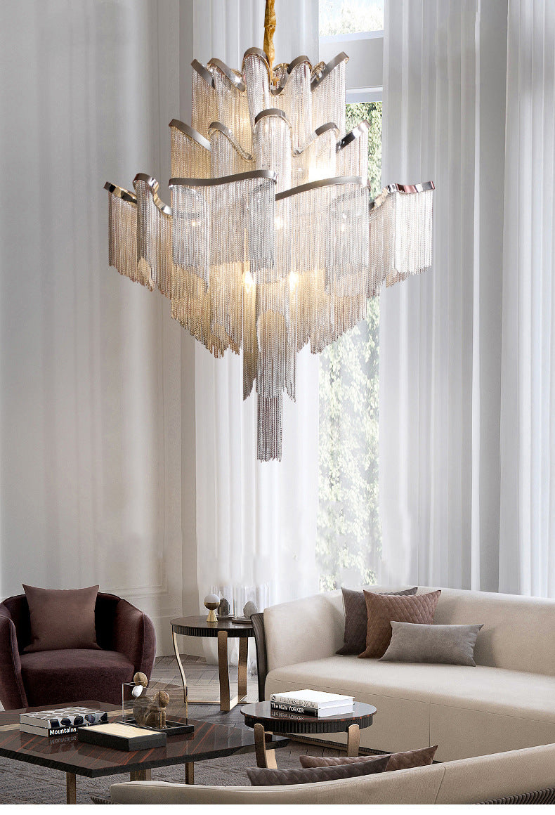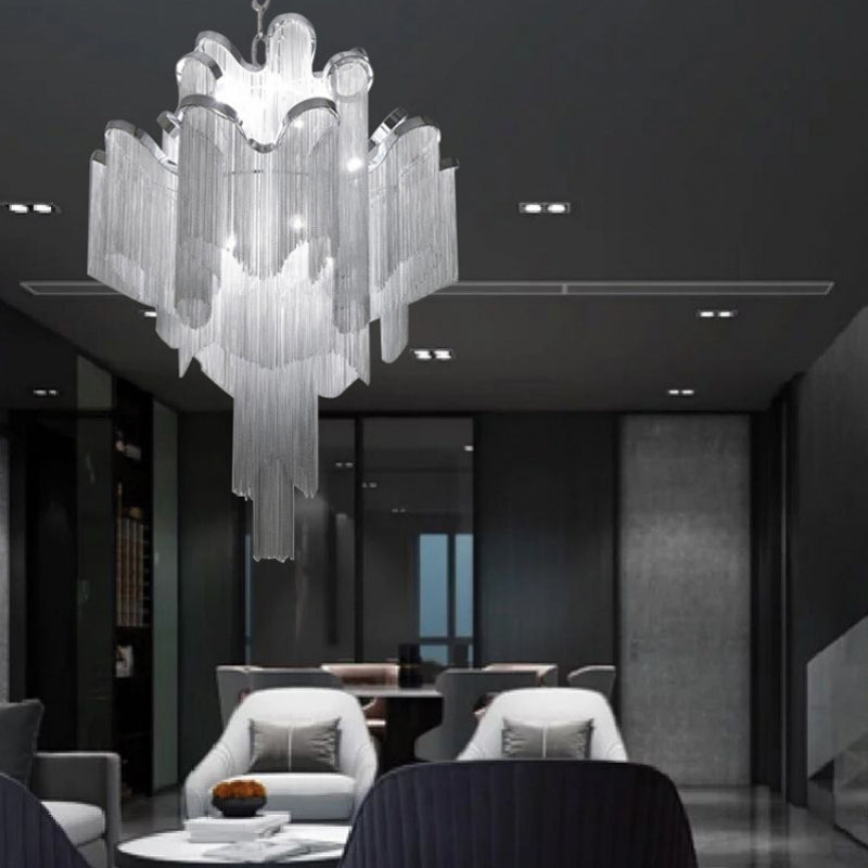 Discover our latest addition to our lighting collection - the Modern Fringe Chandelier! This lavish and breathtaking chandelier will bring a sense of luxury and sophistication to any space. With its intricate fringe design, it's the ultimate centerpiece for those seeking to elevate their home with a touch of grandeur.