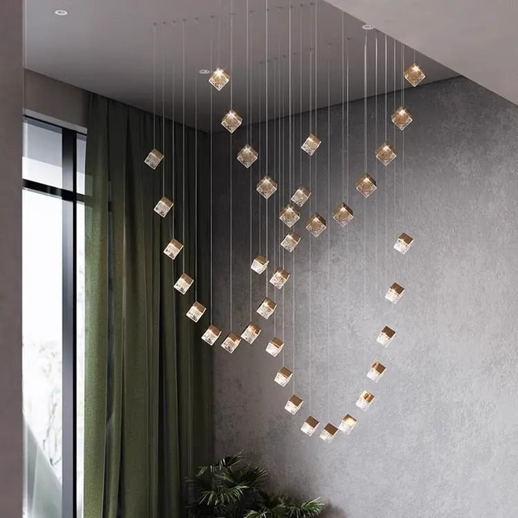 This Modern Ice Block Texture Chandelier combines low energy consumption with high luminosity, providing uniform light distribution that is gentle on the eyes. Its softly diffused, warm illumination creates an inviting and comfortable atmosphere. Featuring a distinctive ice block texture, this chandelier brings a sophisticated, luxurious touch to contemporary interiors.