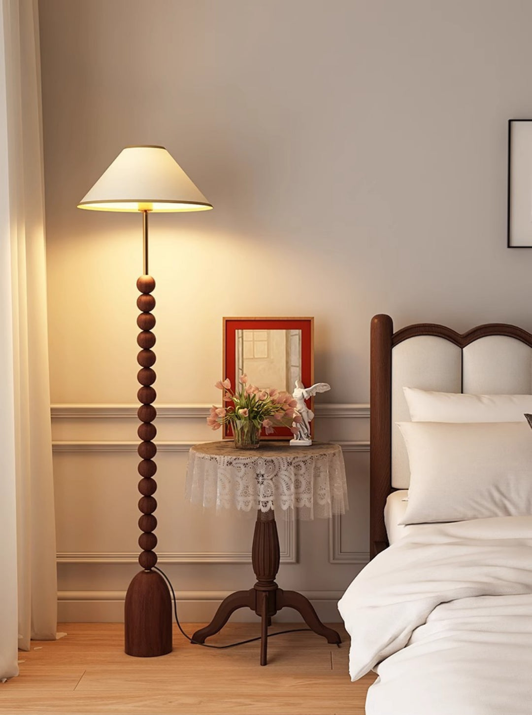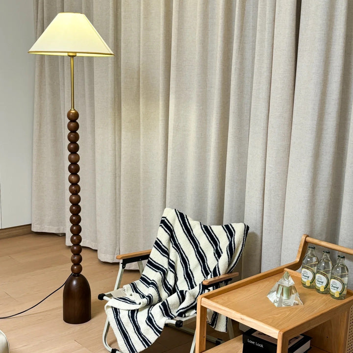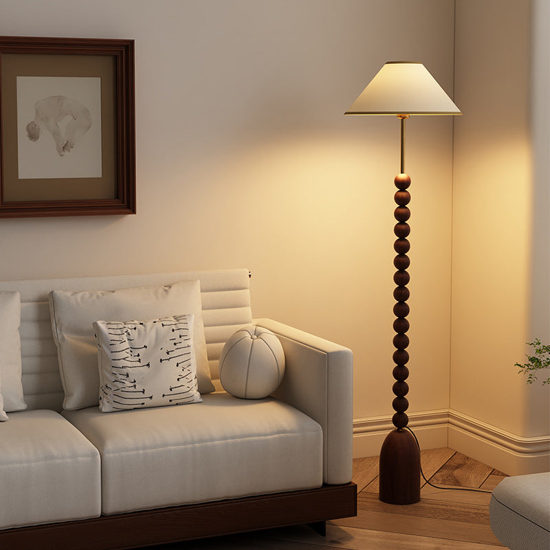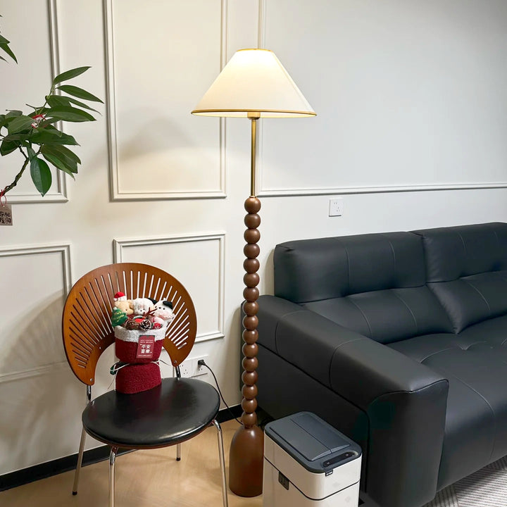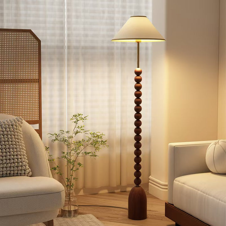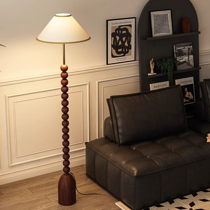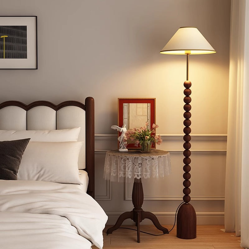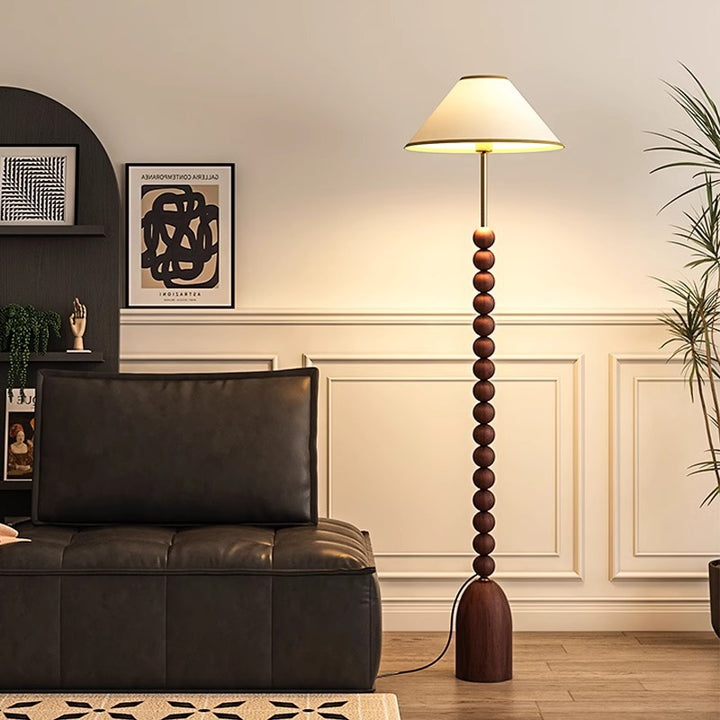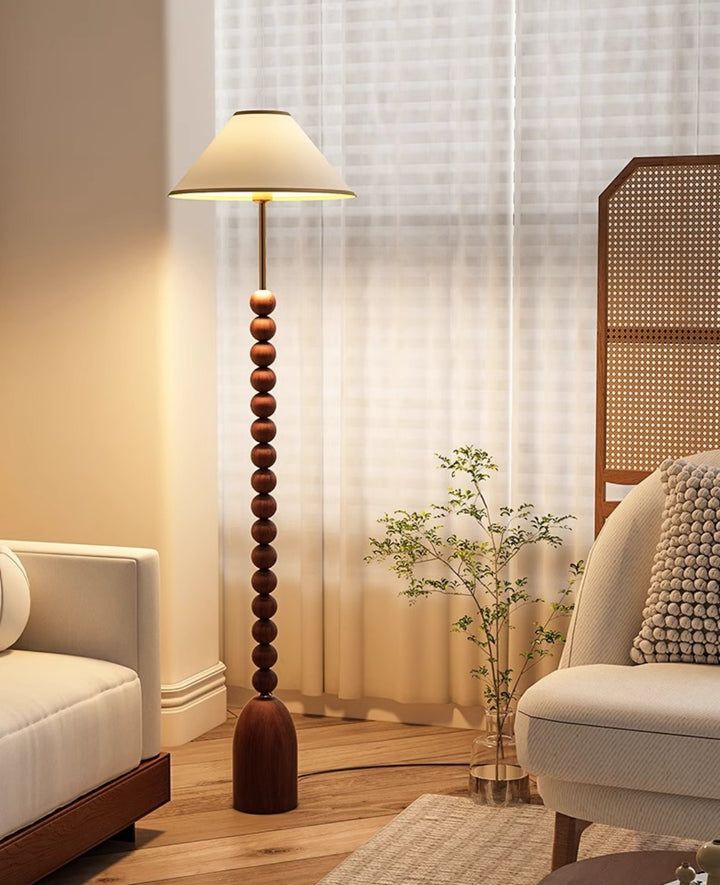 Enhance your space with our wood Gourd Floor Lamp. The fabric lampshade adds elegant style while the walnut wood body brings a touch of modern sophistication. A must-have for those seeking a luxurious and contemporary ambiance.
