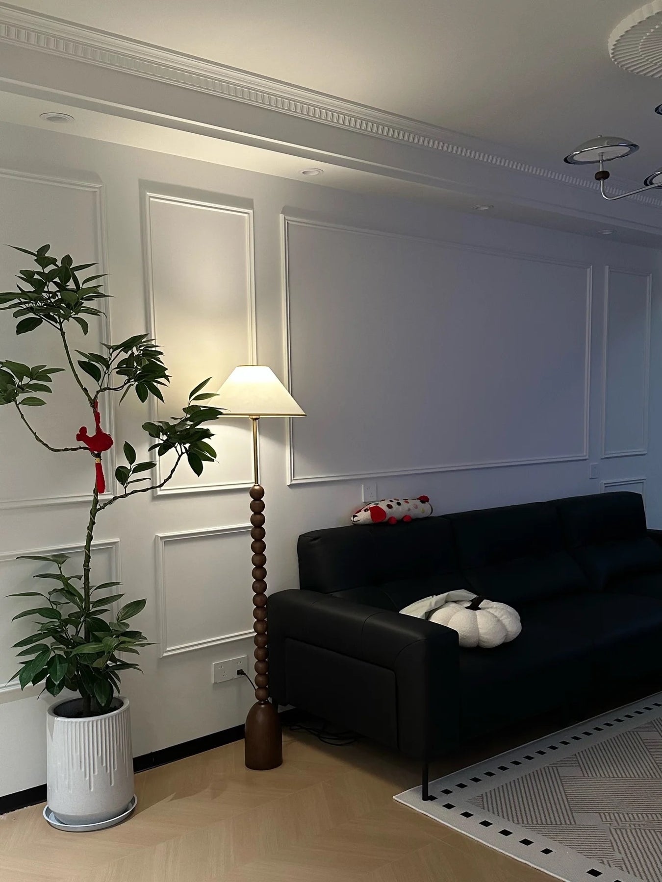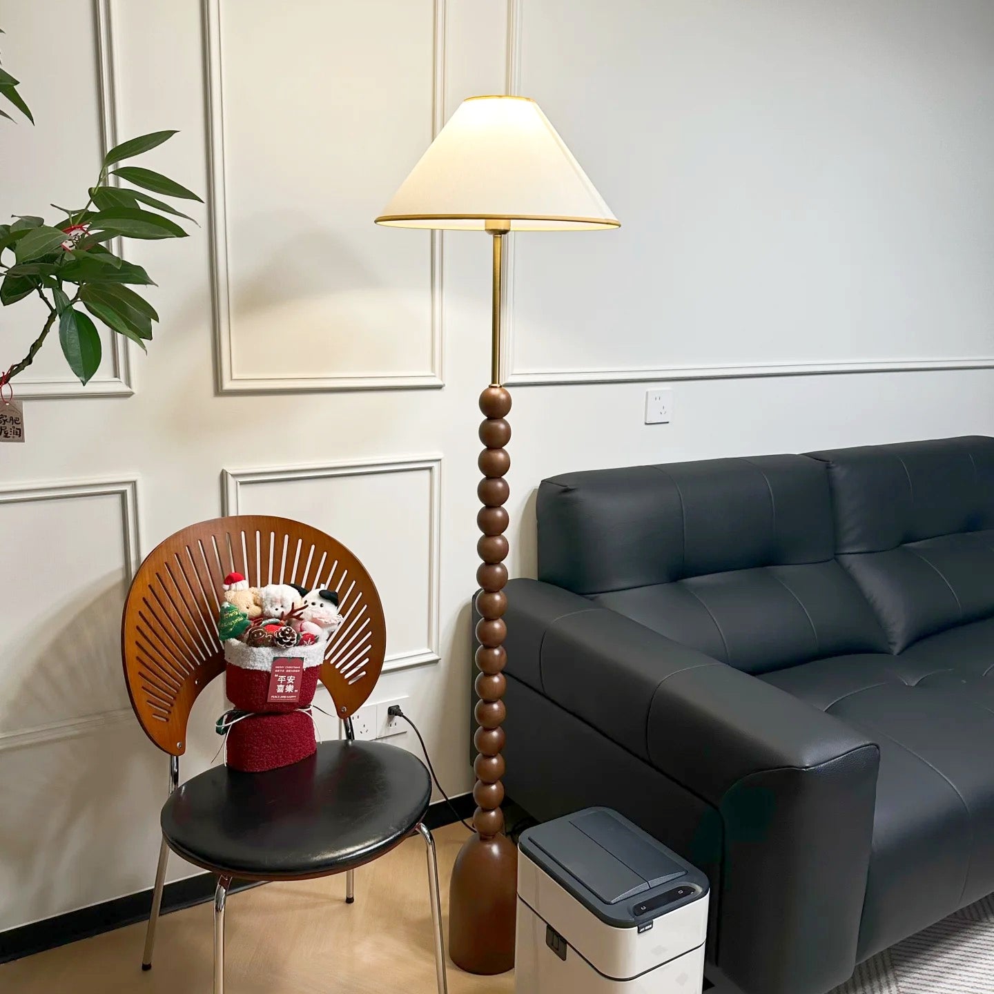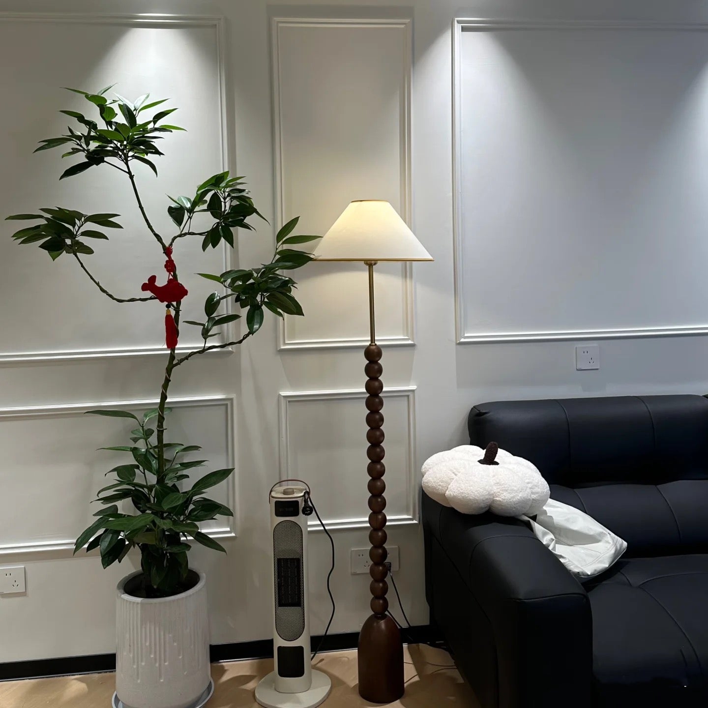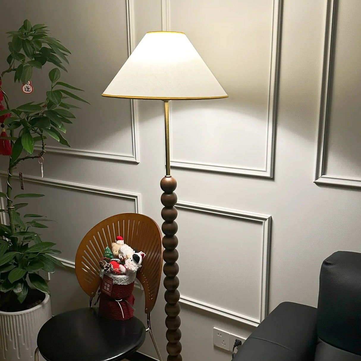 Enhance your space with our wood Gourd Floor Lamp. The fabric lampshade adds elegant style while the walnut wood body brings a touch of modern sophistication. A must-have for those seeking a luxurious and contemporary ambiance.
